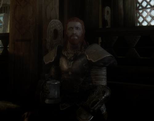 Он является хорошим войном, искусно владеющий топором и мечом, который яро ненавидит всех талморцев и не равнодушен к аргонианкам ( поймете из диалогов 😉 ).