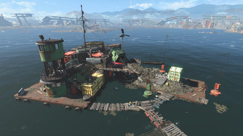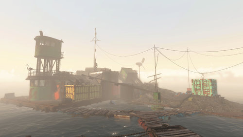 Вам нужна Забытая баржа. Она находится в бухте между Замком, гаражом Атомных котов и Спектакл-айлэнд. Советую прочитать терминал. Там есть лорные записки по моду