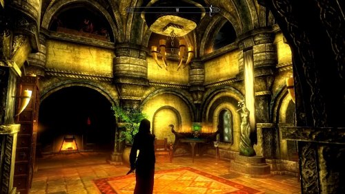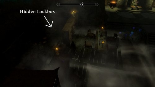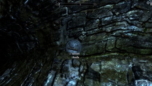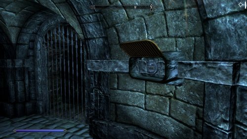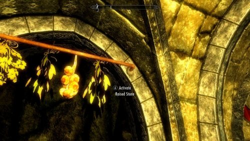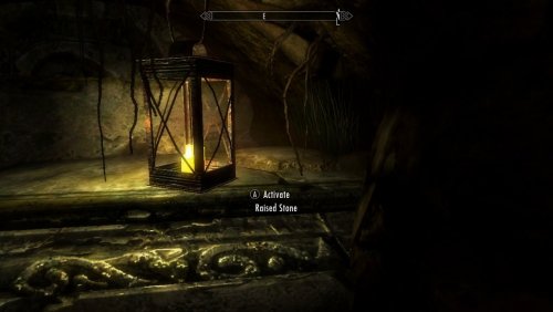 4) Чтобы войти в вестибюль, найдите выключатель справа от двери. Посмотрите на двемерскую полку двемеров и найдите выступающий камень рядом с фонарем.