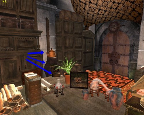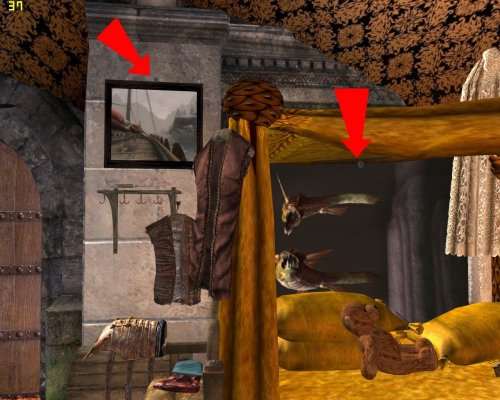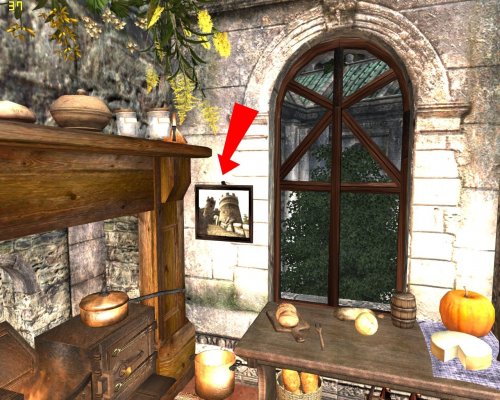- над входом висит щит и меч. Активируйте и получите новый меч