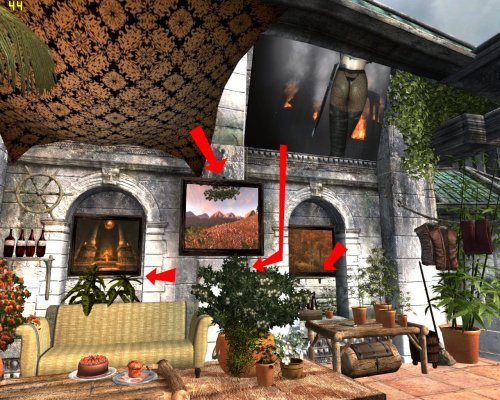 - в доме есть 11 мест куда можно повесить картины: на гвоздь, подставку, веревку
