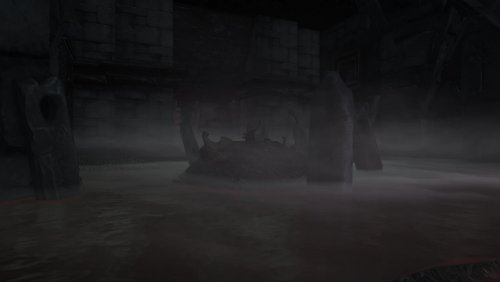 Ответ: Меня всегда привлекала архитектура Пирамиды душ, и я использовал её в своём подземелье без особых размышлений. Мне было легко сделать пещеру или северное подземелье слишком большими, а внешний вид Пирамиды Душ мне всегда нравился. Возможно, подземелье и его обитатель как-то связаны с Идеальными Хозяевами Каирна Душ. Я не знаю. Архитектура Dawnguard отличается от остальной части игры.