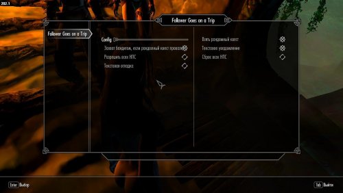 Последователи и компаньоны могут отправиться в путешествие. Они посетят города и подземелья. Они будут брать рандомные задания и получать награды. Не ограничивается последователями и компаньонами. Это работает и на всех НПС. Изменить можно в MCM.