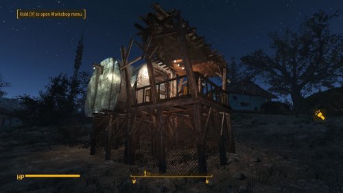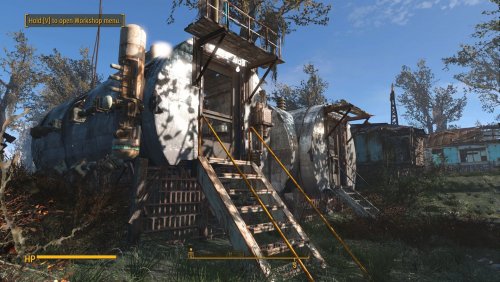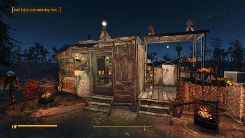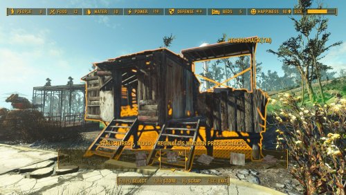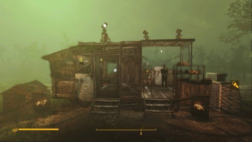 - 13 деревянных хижин, 17 металлических хижин, 6 открытых хижин торговцев, 7 крытых хижин торговцев, 8 крафт станций, 6 спальных мест, деревянная платформа
