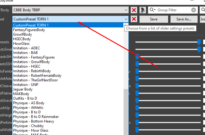 Почему-то бодислайд не видит изменения, закинул новый пресет в папку слайдерпресетс, его нет в списке выпадающем