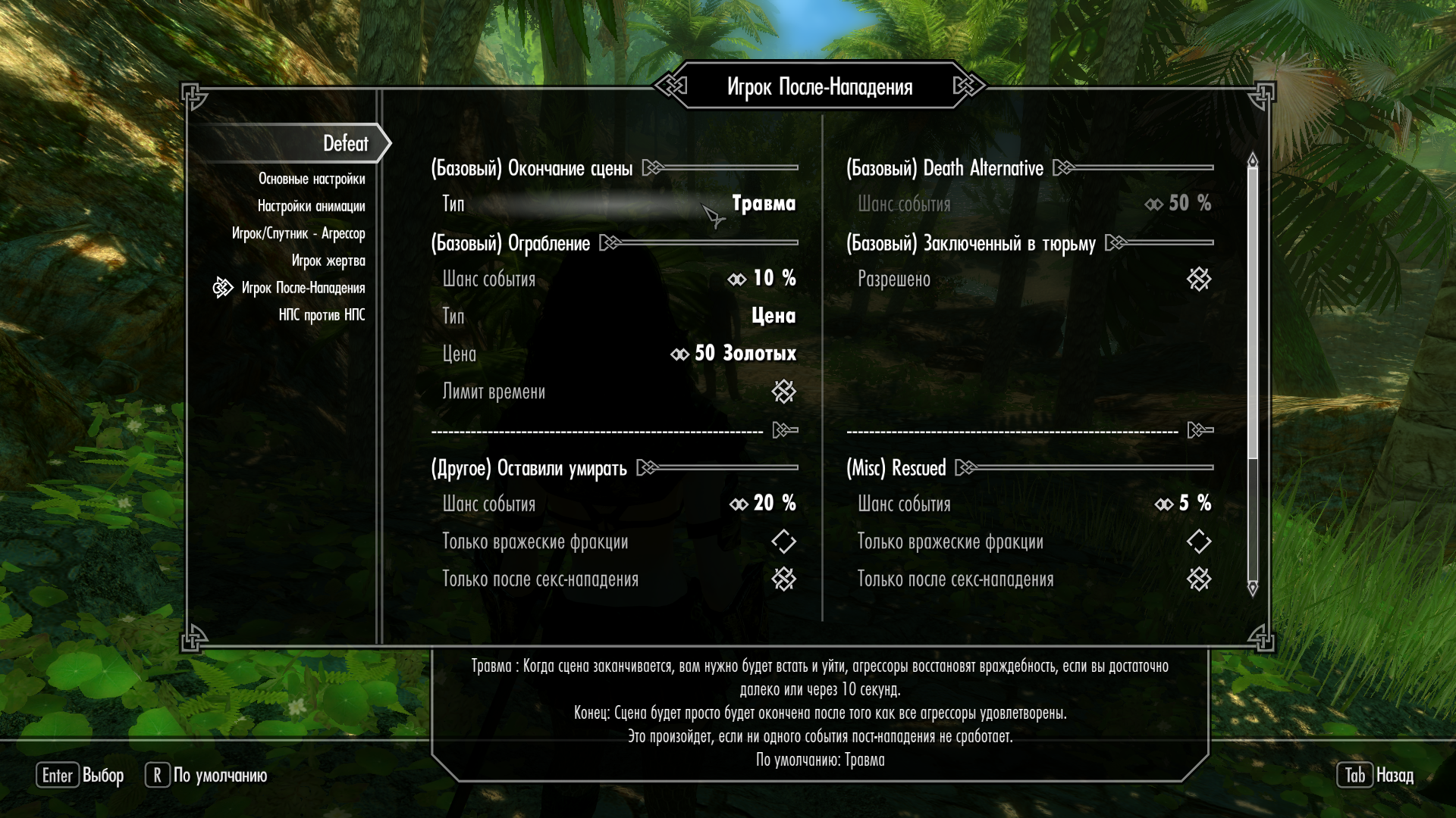 В моде "дефит" Есть события после поражения ЖГГ. У меня они вообще не срабатывают. После поражения идет насилие, а потом новй агр НПС и смерть. Играю с сохранения Торна. Заранее благодарен за полезный совет по настройке мода)))