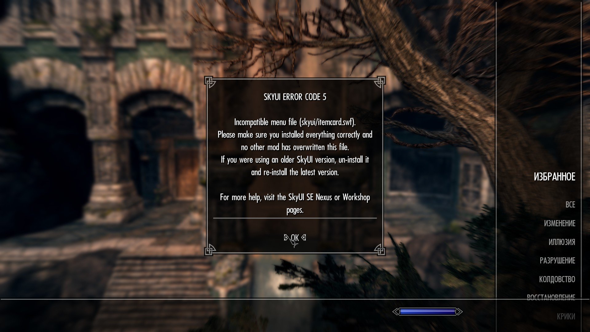 @HACOK такое бывает если начинаешь игру не с предустановленного сохранения или запускаешь не skse64_loader