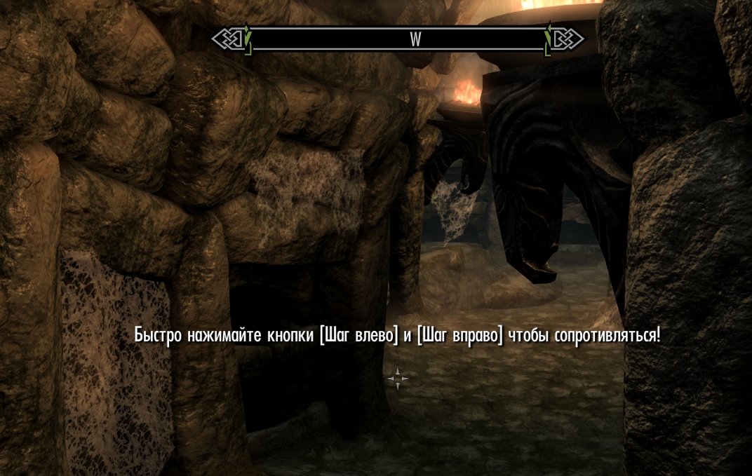 Пусть на этом Пике вашу ГГ драугры оприходуют, чтобы скрипт сработал и анимация проигралась. Обычно в этом случае надпись исчезает. Так же есть функция настройки и очистки мода, в его МСМ-меню. Название мода точно не помню, но в МСМ у него есть параметр шкалы сопротивления. Можно сделать сохранение и перезайти в игру, тоже срабатывает, но не всегда.