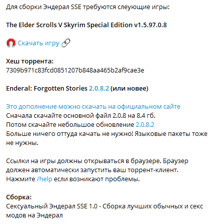 @Fiksius Сборка требует установленный и работоспособный Enderal: Forgotten Stories любой версии от 1.5.8.0 и выше, включая финальную 1.6.4.0