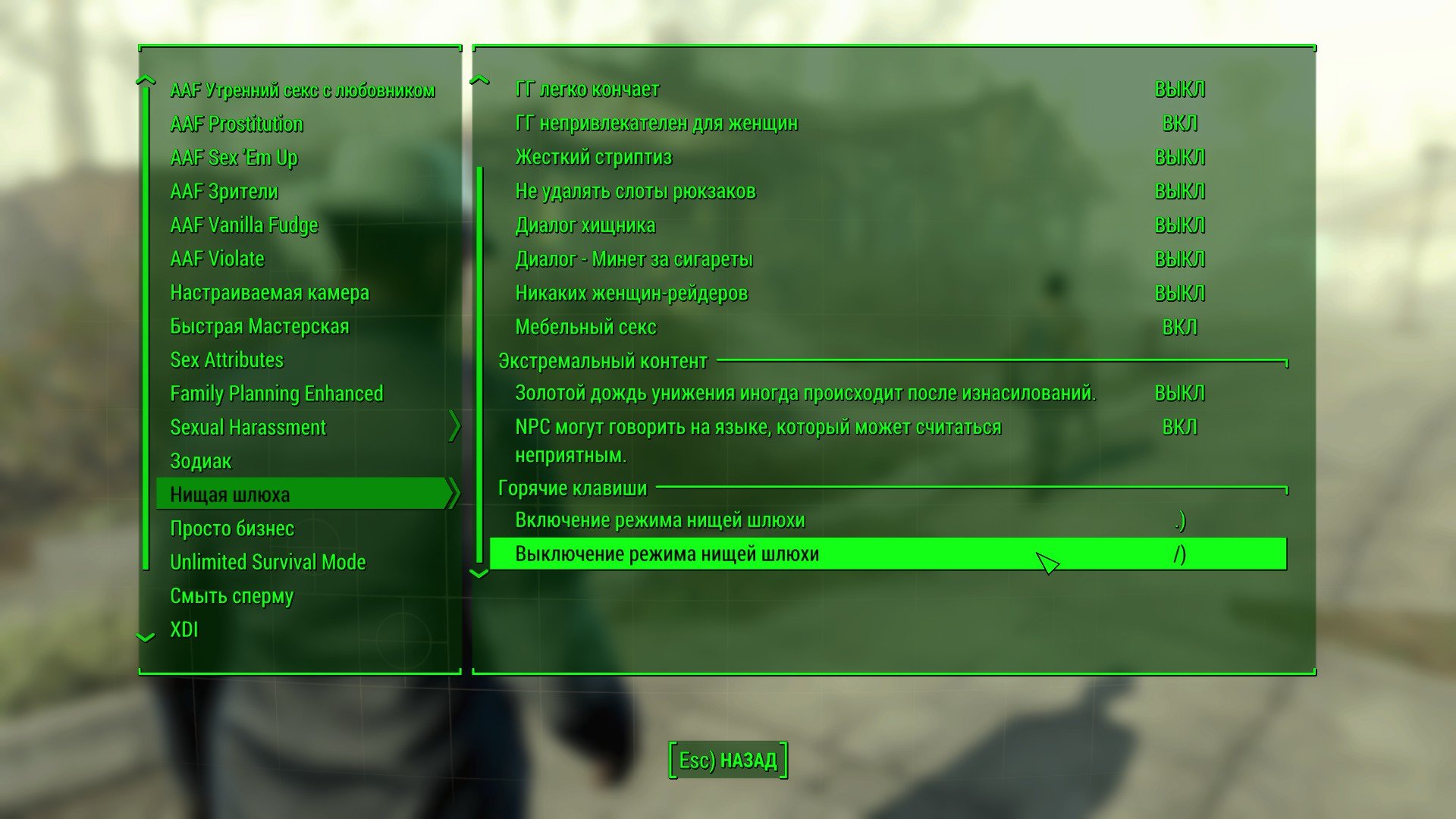 О, прошу, помогите. Как отключить стоящие в сборке заменители пайпер, престона, мамаши мёрфи и других компашек? Для меня это не. красиво. Может кому и нравится, но для меня через чур. Особенно одежда пайпер. Я скучаю по её нормальному плащу. Как всё вернуть? Сборка мне нравится по большей части, отличная, огромное спасибо за работу, но терпеть стрёмные реплейсы людей и одежды, откуда соски выпригивают на тебя как маньяк из кусов.. В общем ,если бы подсказали, что именно отключать, был бы ужасно благодарен.