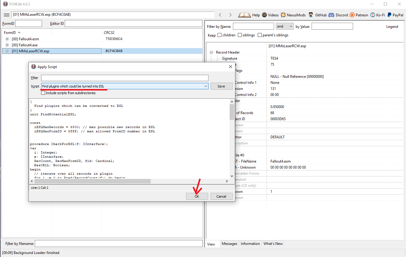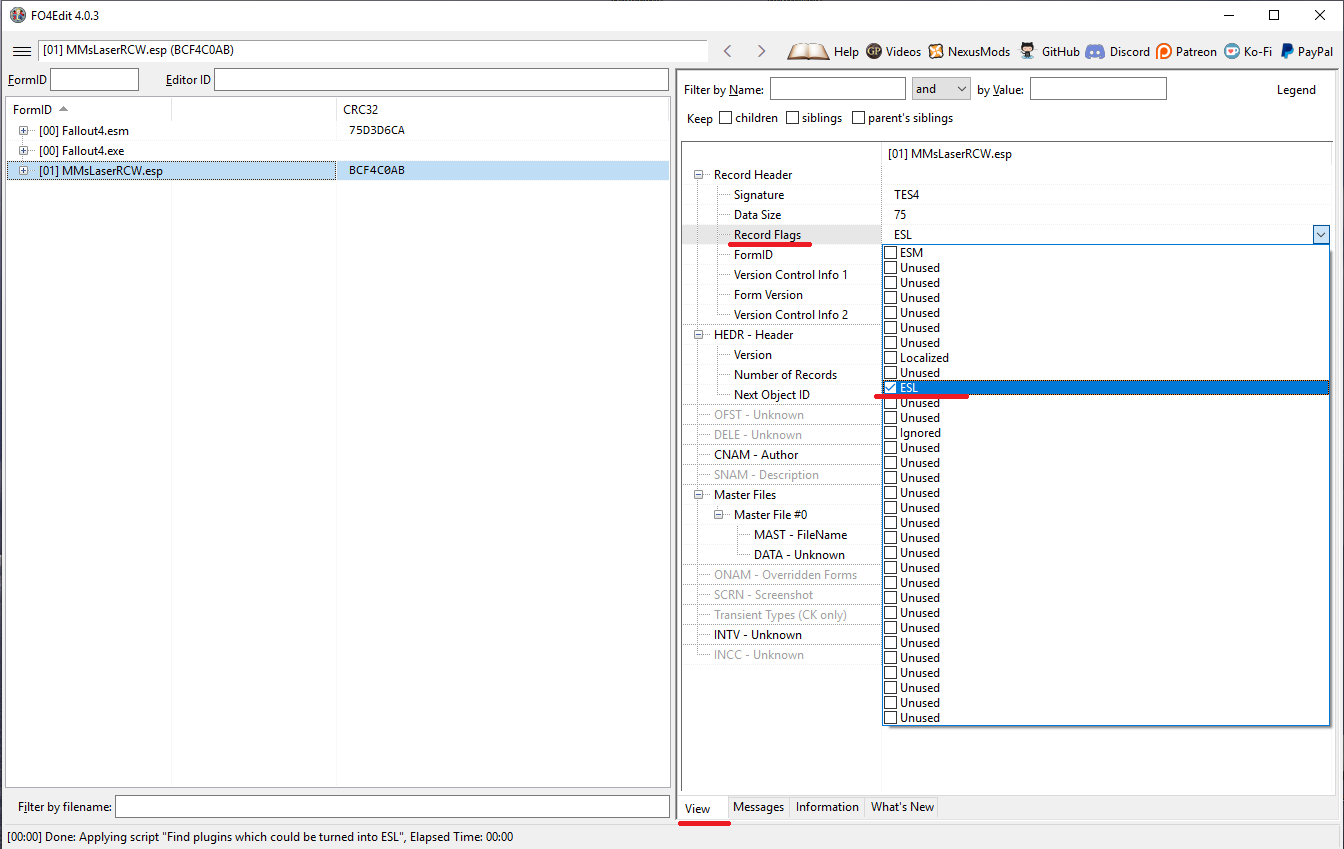 если же мод не содержит FormID, увидишь текст "Can be turned into ESL by adding ESL flag in TES4 header" (может быть обращён в ESL после добавления флага ESL), сразу добавляем флаг и, соответственно, закрываем.