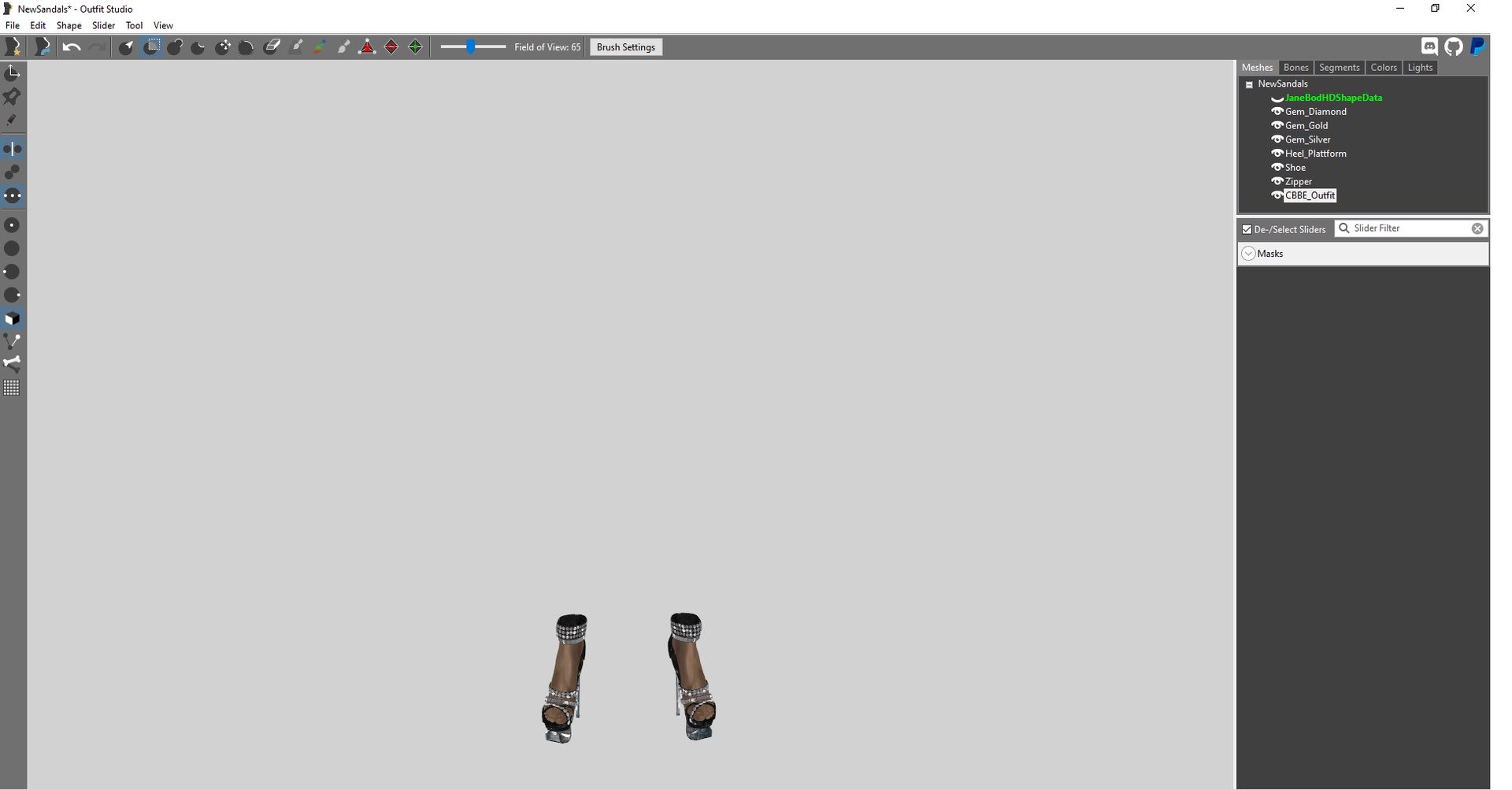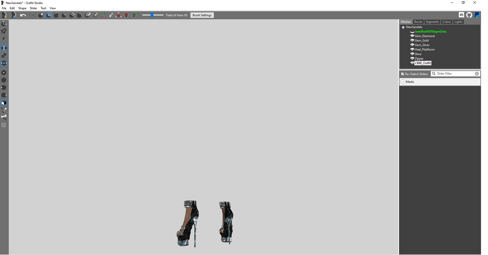 была, не видит текстуры, так что я кое-какие текстуры с других пресетов добавил, но метал почему всё-равно на каблуках прозрачный(видно no image). Главная загвоздка заключается в том, что я неправильно всё это сохранял потом и внедрял в игру. Смотрел некоторые туториалы, но там есть только варианты адаптации и подгона обуви, каблуков нигде не нашёл, поэтому решил вот таким способом. У меня не получается вывезти эти каблуки в отдельный пресет, как я увидел в одном из туториалов (см.картинку). Или эти каблуки надо скрафтить? Крафтить я пробовал в самом начале содружества, но там их не было.
