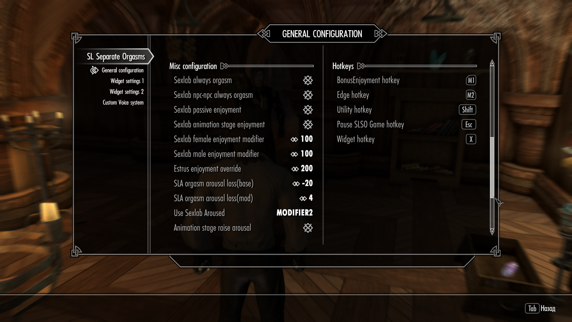 • В моде SexLab Submit Крик подчинения настроен на клавишу - англ V.