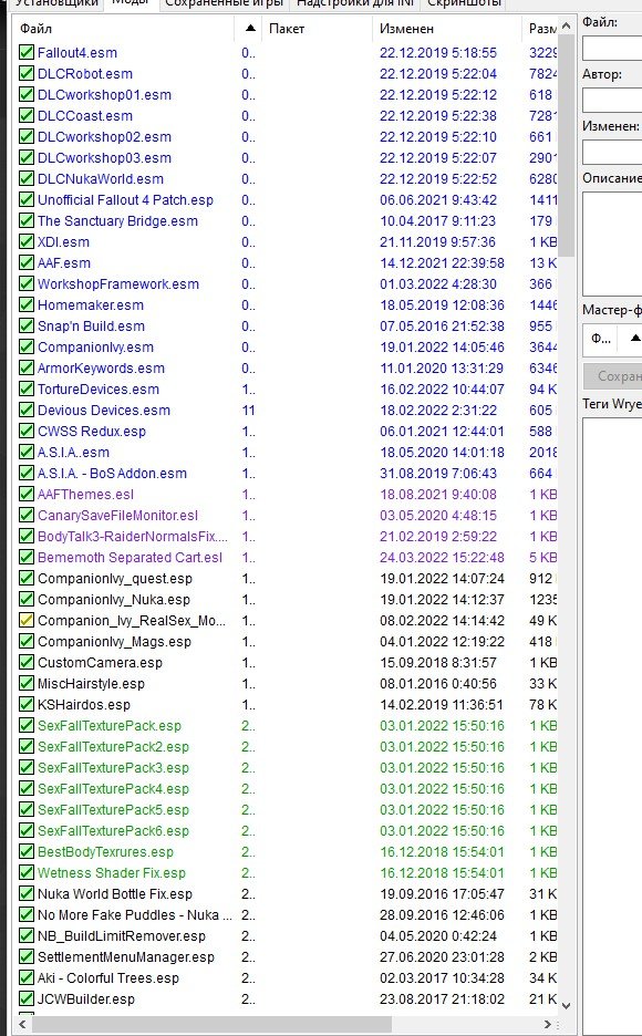 Сборка модов добавляет в игру Fallout 4 контент непристойно взрослого содержания, а так же делает мир игры более красивым и реалистичным. Все наборы модов максимально совместимы и не вызывают конфликтов в игре. Сборки легко устанавливаются и сразу готовы к применению.