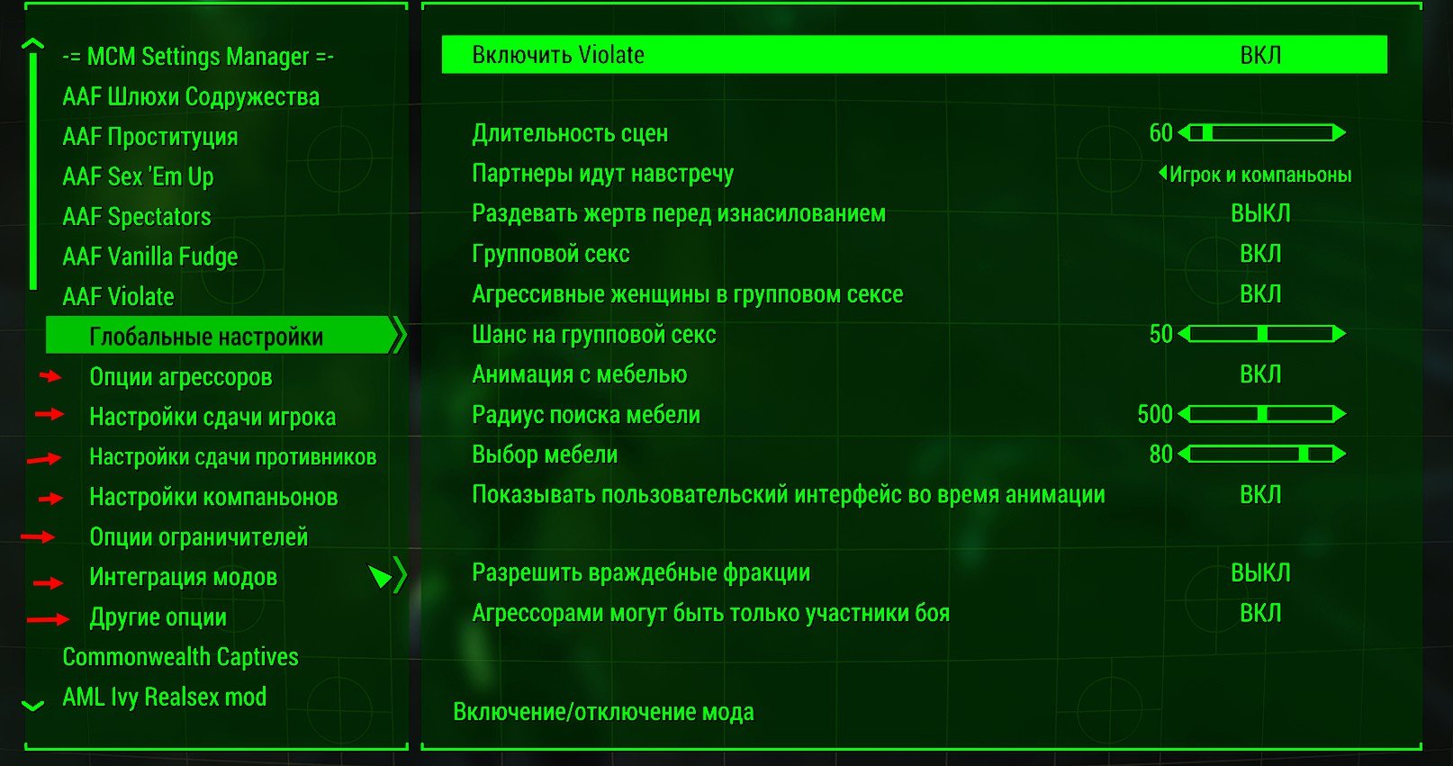 МСМ Settings Manager - Triss (или Daemon - в зависимости от пола персонажа) - в списке ищи AAF Violate