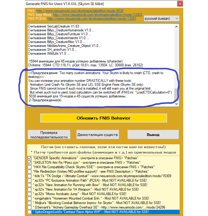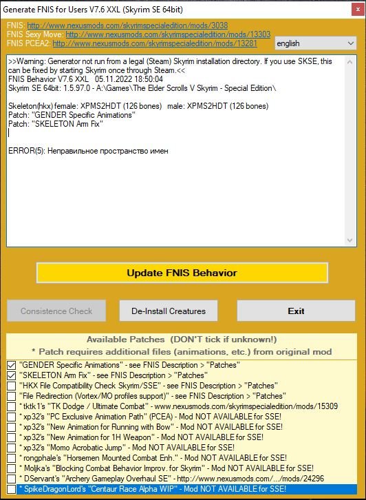 Вечер добрый,ошибка FNIS,я проверил файлы сборки,все целые