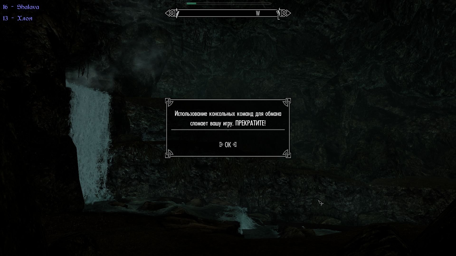 Мне вот интересно, это, что за бред, консоль не использовалась. Освободил Хлою, идем себе спокойно и вылазит эта шляпа и перемещает в начальную локацию.