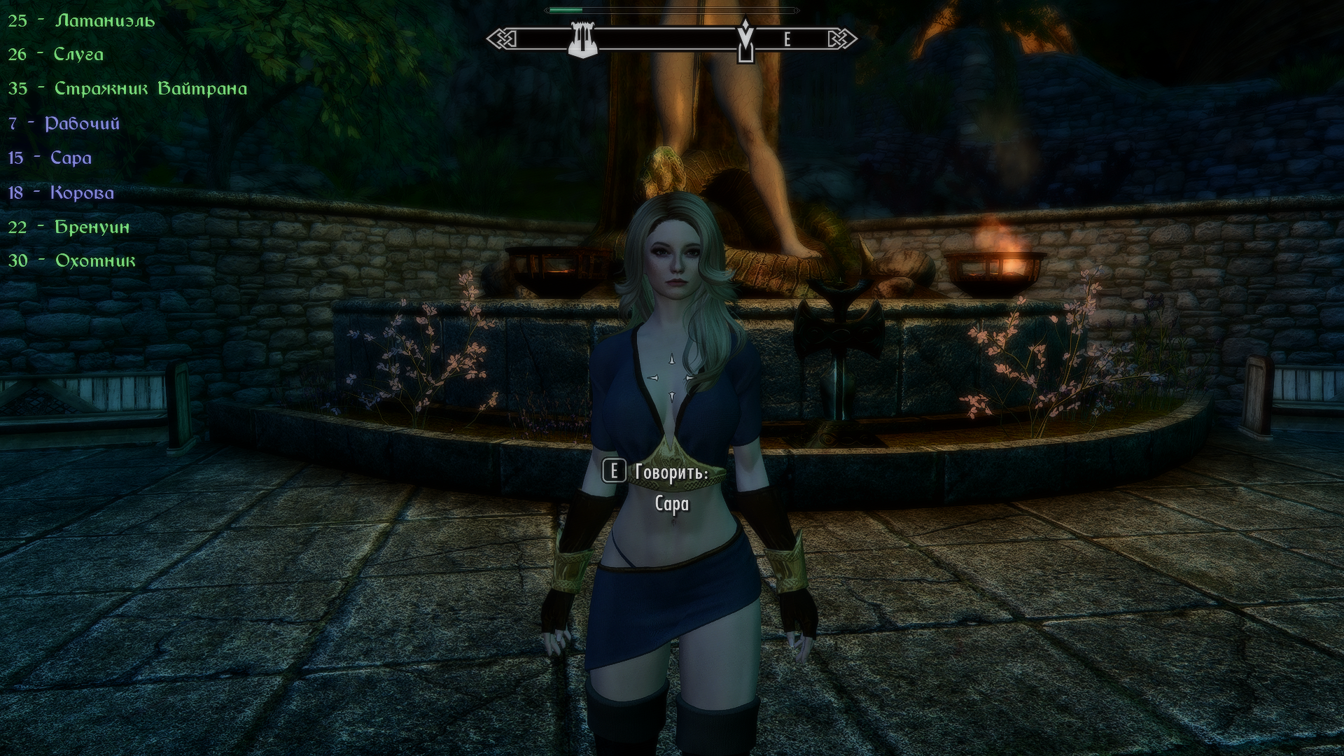 займись с Садией сексом и укажи "использоать кровать" окажешься в нужной комнате на втором этаже. Этот баг перекочевал из предыдущей сборки. в этой сборке много багов и вылетов или зависаний. Например, Серана не появляется у Израна. Пропадают персонажи из квестов, которых надо убить или можешь вылететь рандомно где угодно, поэтому сохраняться приходится каждый шаг...
