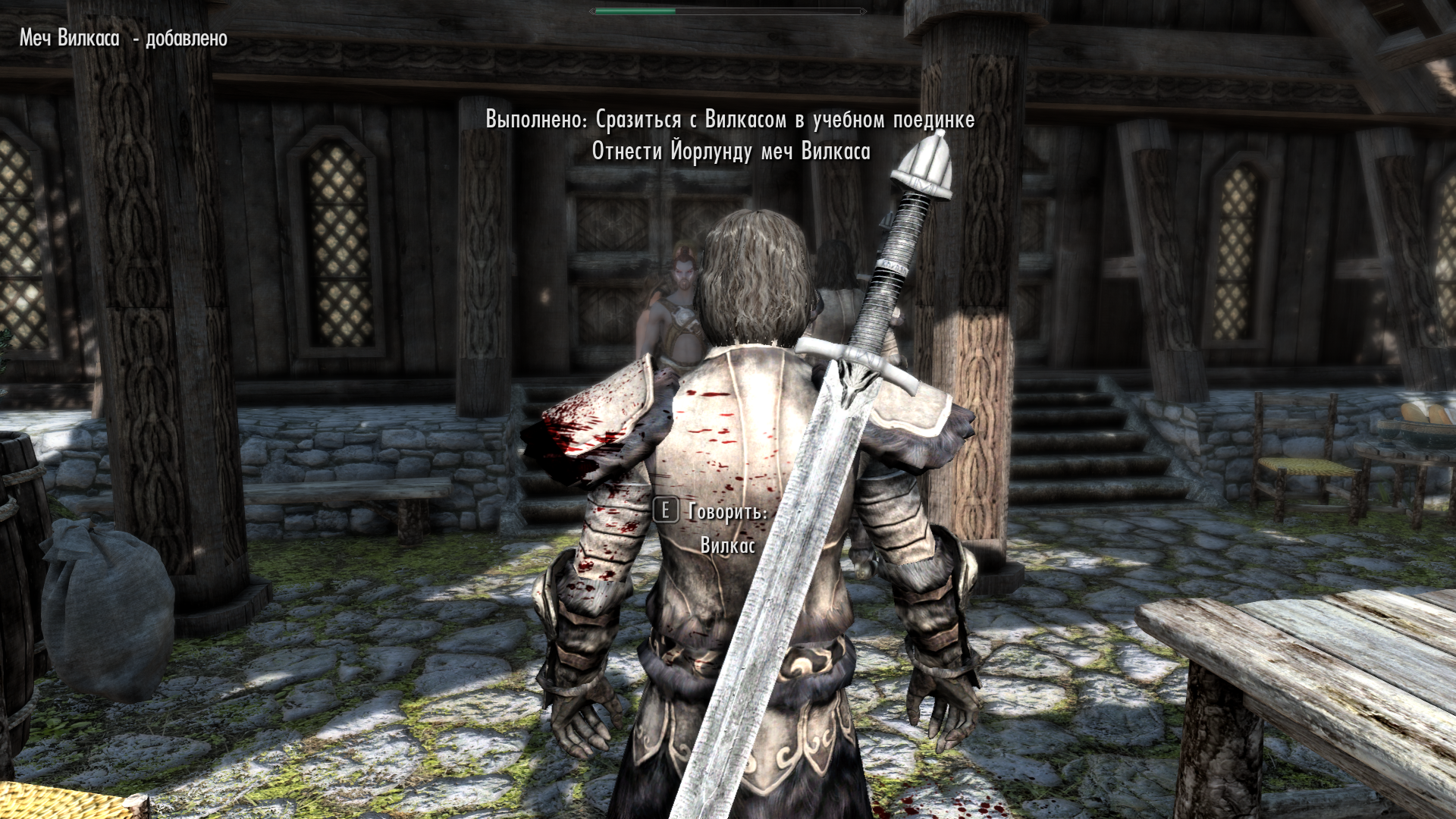 Вилкас даёт свой меч на заточку, но меч остаётся у него за спиной....