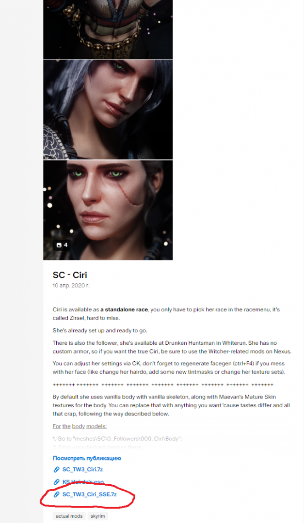 Ну самый реалистичный(в смысле похожий на реальную Цири из Ведьмака) раса-мод что на LE, что на SE - это как мне кажется работа Annie Lenine.(как, впрочем, ее же моды на Лару, Тифу и тп.) Но там то это именно Цири, т.к. это порт файлов из самого ведьмака, насколько я понимаю. Хотя по поводу оптимизации не знаю..
