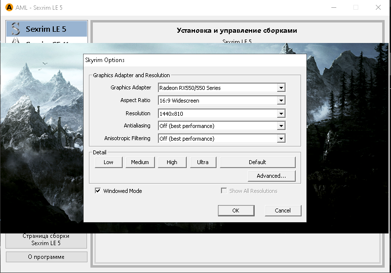 🔴 Очень важно!!! Эту сборку можно запускать только из приложения AML. Не запускайте ее с skse_loader 🔴