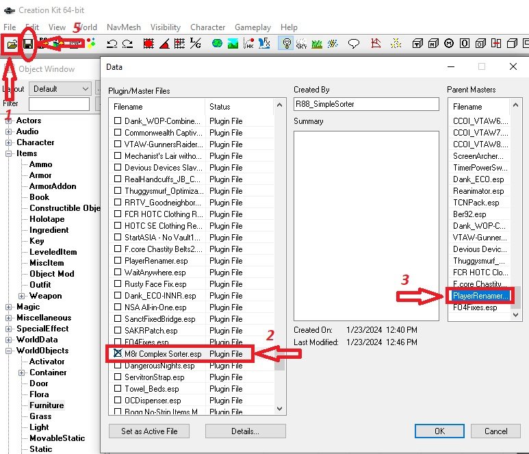 !!! перед описанными ниже действиями сохрани отдельно файлы M8r Complex Sorter .esp  и  nvvault1080.esp