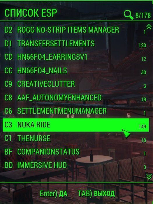 1. Удалить NukaRide - Main.ba2, NukaRide - Textures.ba2, NukaRide.esp