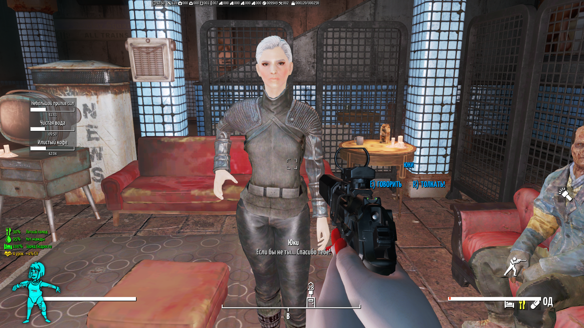 Сверху различные счетчики инвентаря (крышки, вес, адреналиновые инжекторы, ремонтные наборы и многое другое) и игровое время