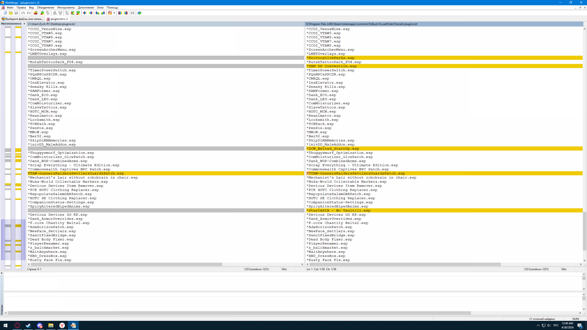 @Enigma_81 Тогда это странно. Те файлы от LongLoadingTimeFix на лист загрузки не влияют. Почему M8r красный то. Скинь мне свой список загрузки. Он в C:\Users\имя пользователя\AppData\Local\Fallout4. Файл plugins.txt