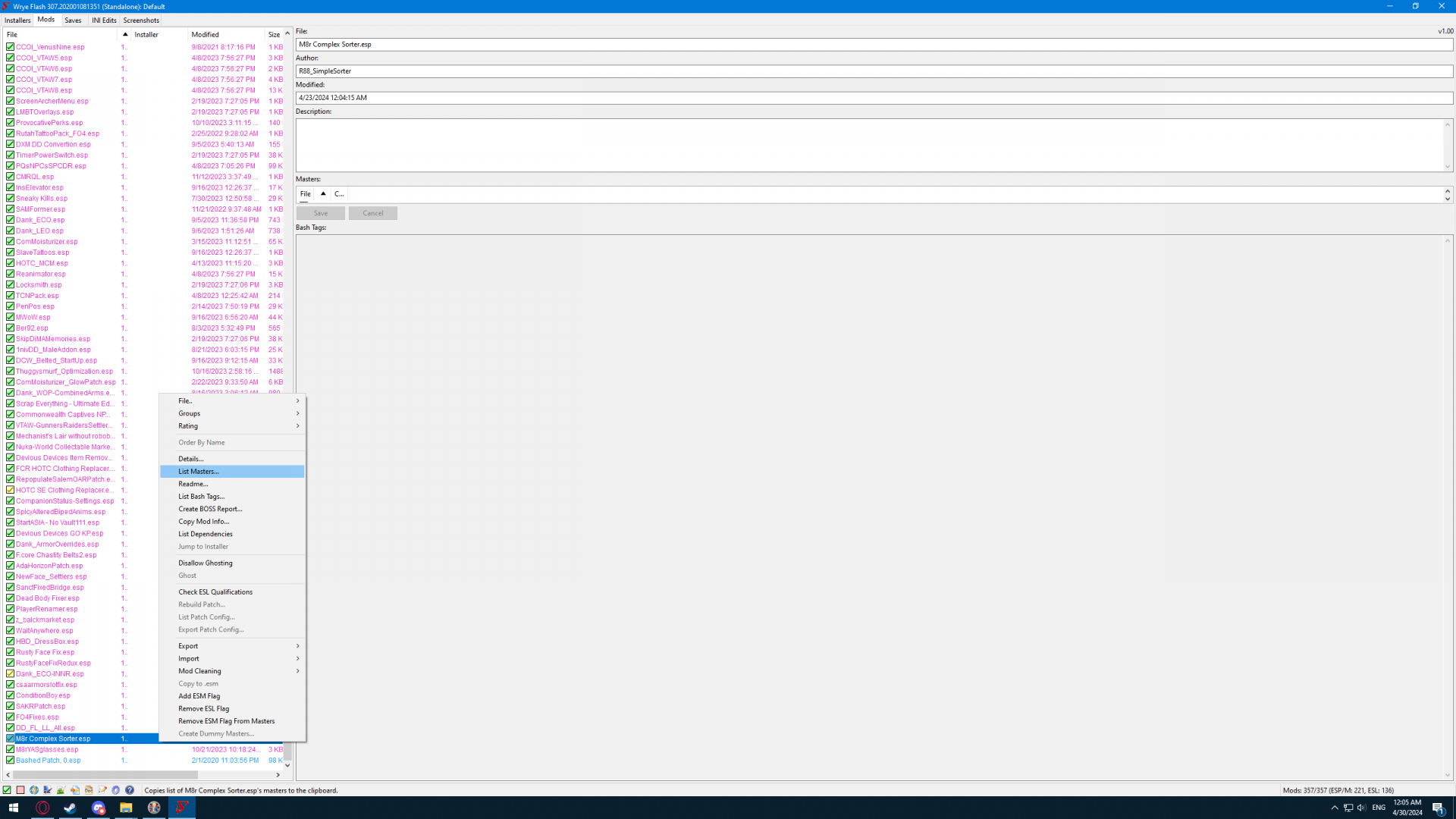 В Wrye Bash  M8r теперь красный и пишет несколько мастер файлов отсутствуют. Это норма?