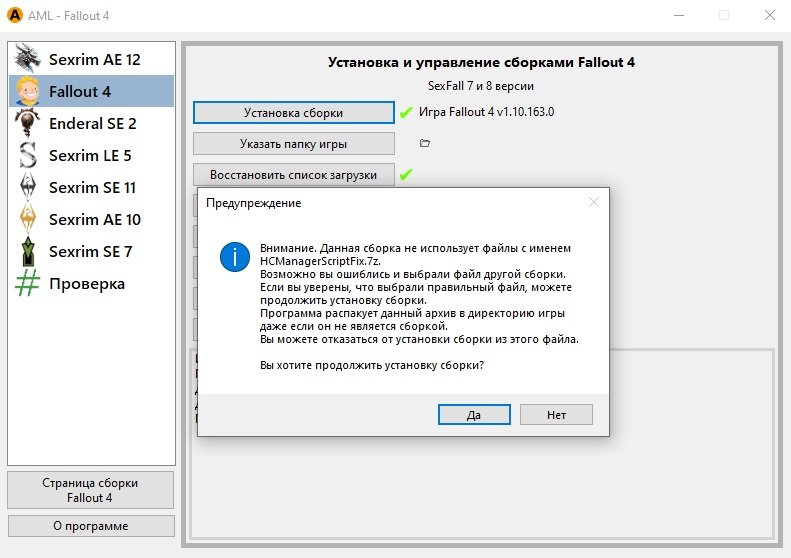 СБОРКА НЕСОВМЕСТИМА С МОДАМИ Sim Settlements и Sim Settlements 2. МОД ГАРАНТИРОВАННО ЛОМАЕТ СБОРКУ В ЧАСТИ AAF СОСТАВЛЯЮЩЕЙ, А ТАКЖЕ ЕМУ БУДУТ МЕШАТЬ СТРОИТЕЛЬНЫЕ МОДЫ ИЗ СБОРКИ.