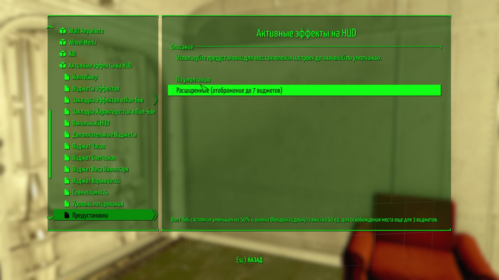 Вот тут вот про временную папку для FallUiHUD. верни файлы на место, пресеты станут доступны. Среди них есть вроде такой который меньше делает значки итд