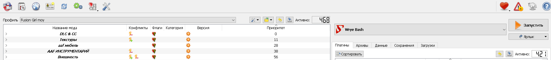 🟢Если ваше компьютер не тянет сборку, можно отключить во WryeBash моды: