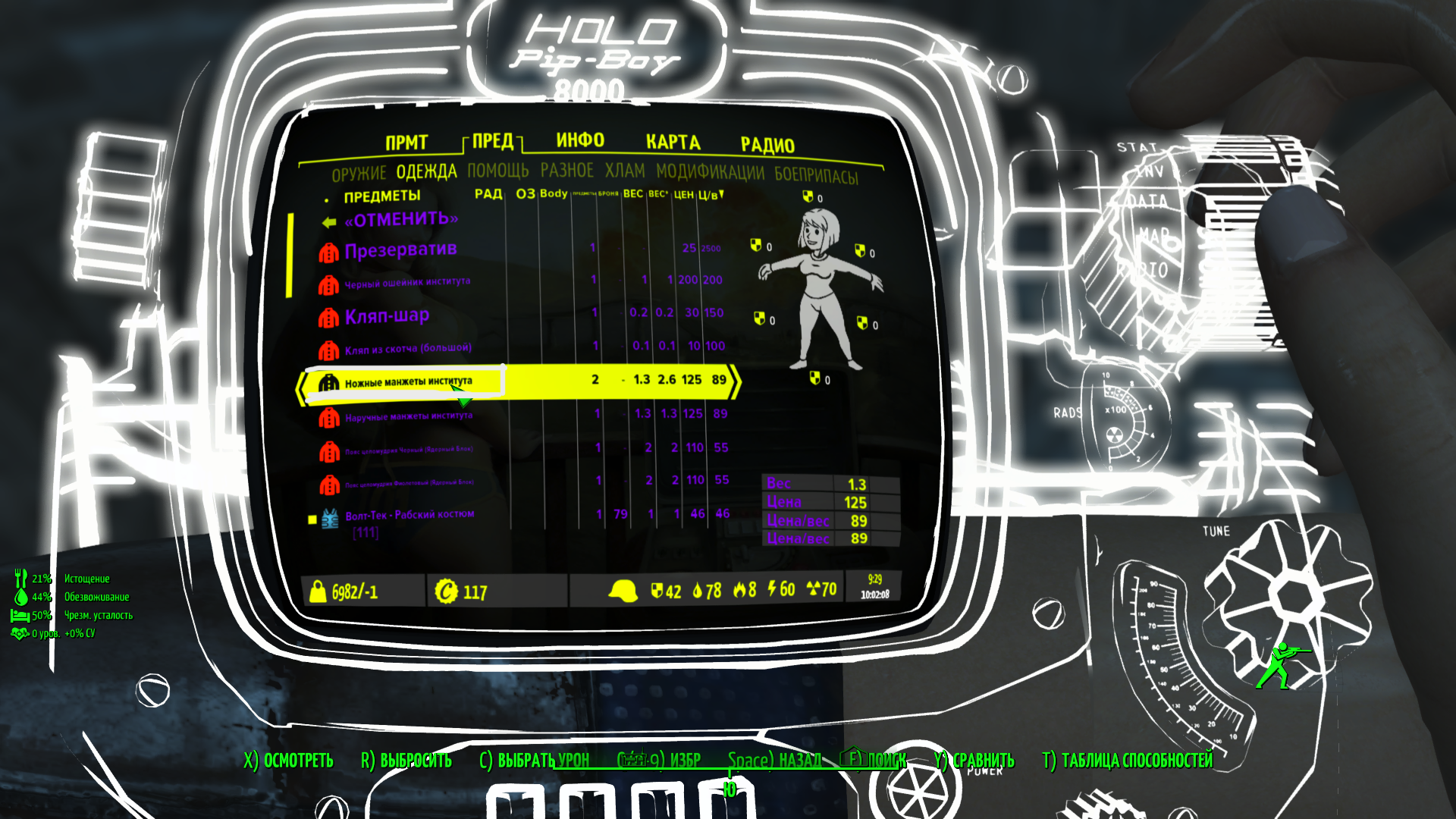такая проблема не могу снять ограничитель на ноги в инвентаре его нету а через  клавишу \ пишет что на скрине