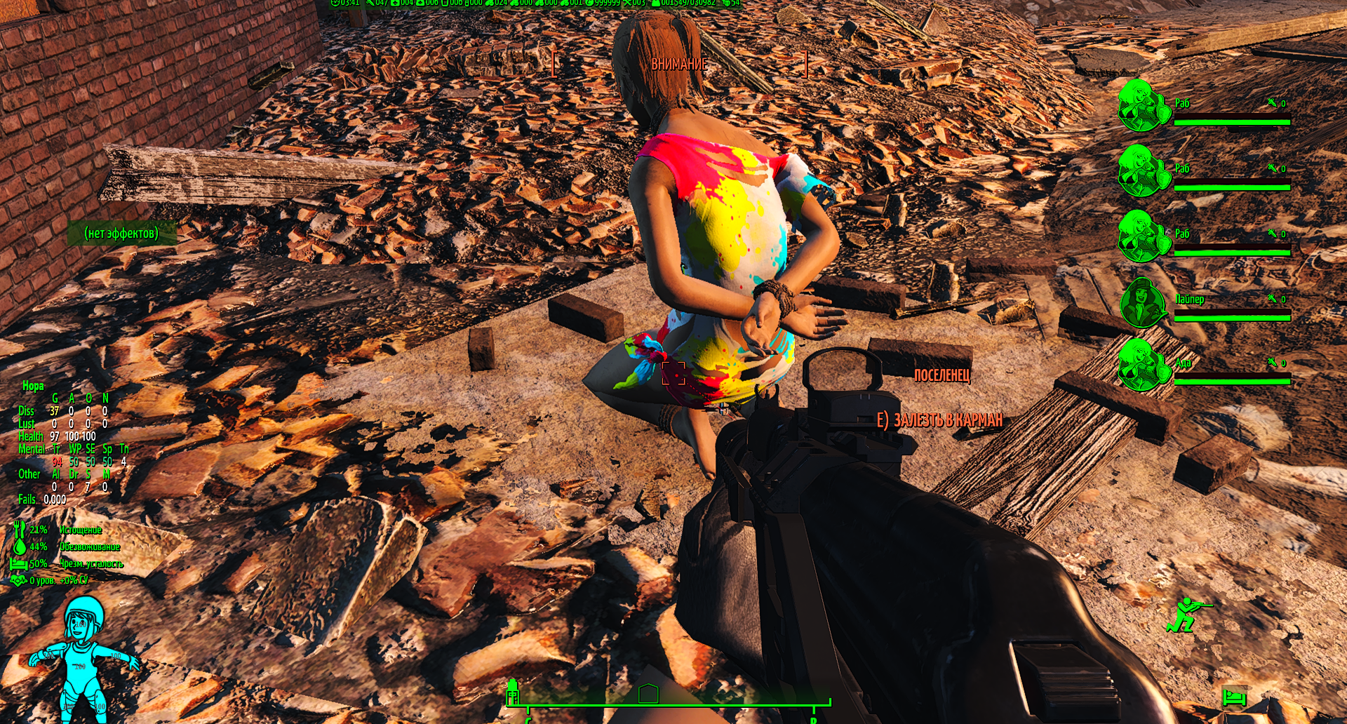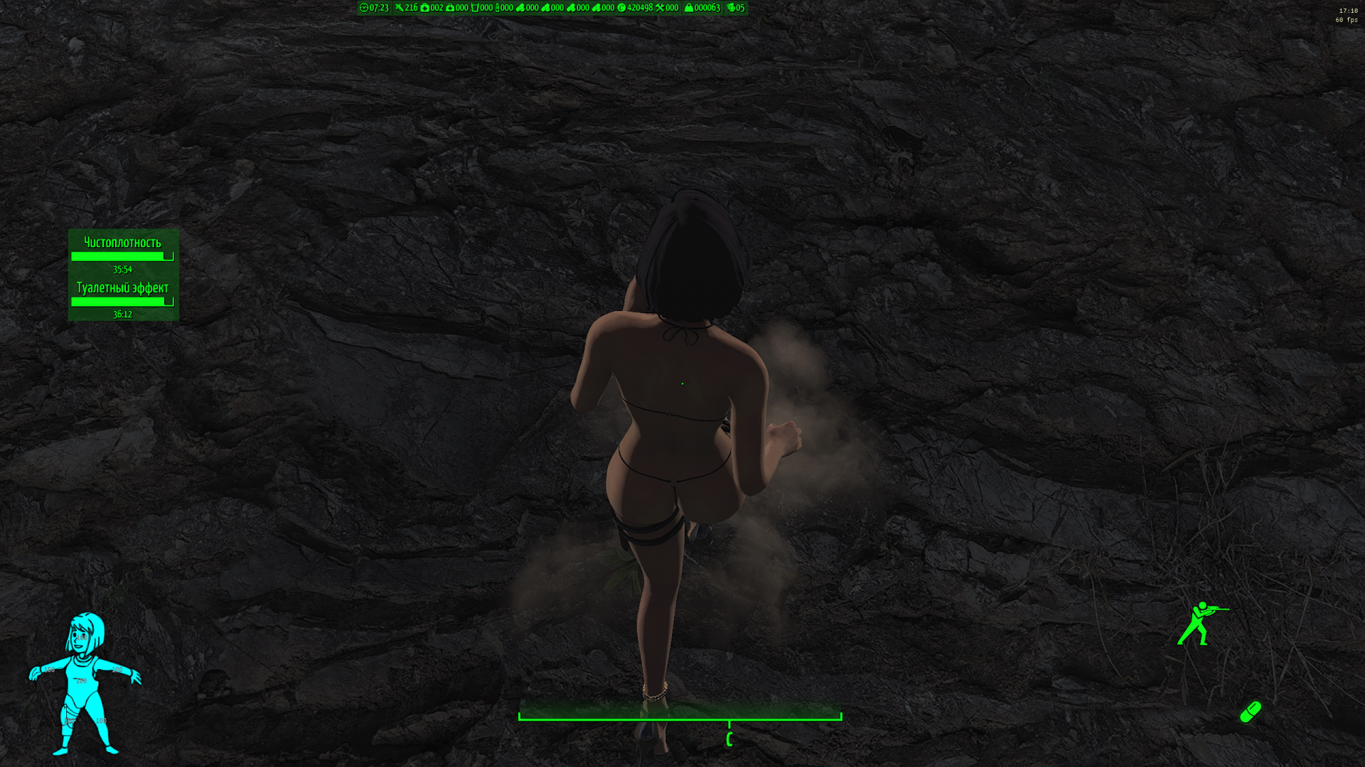 Слева (сверху вниз) - Виджеты активных эффектоа, Виджет Living In Pain (Можно не обращать внимания), Виджеты выживания(Не работают с AN76, только для режима выживания), Виджет волтбой(волтгерл) показывает степень повреджения конечностей.