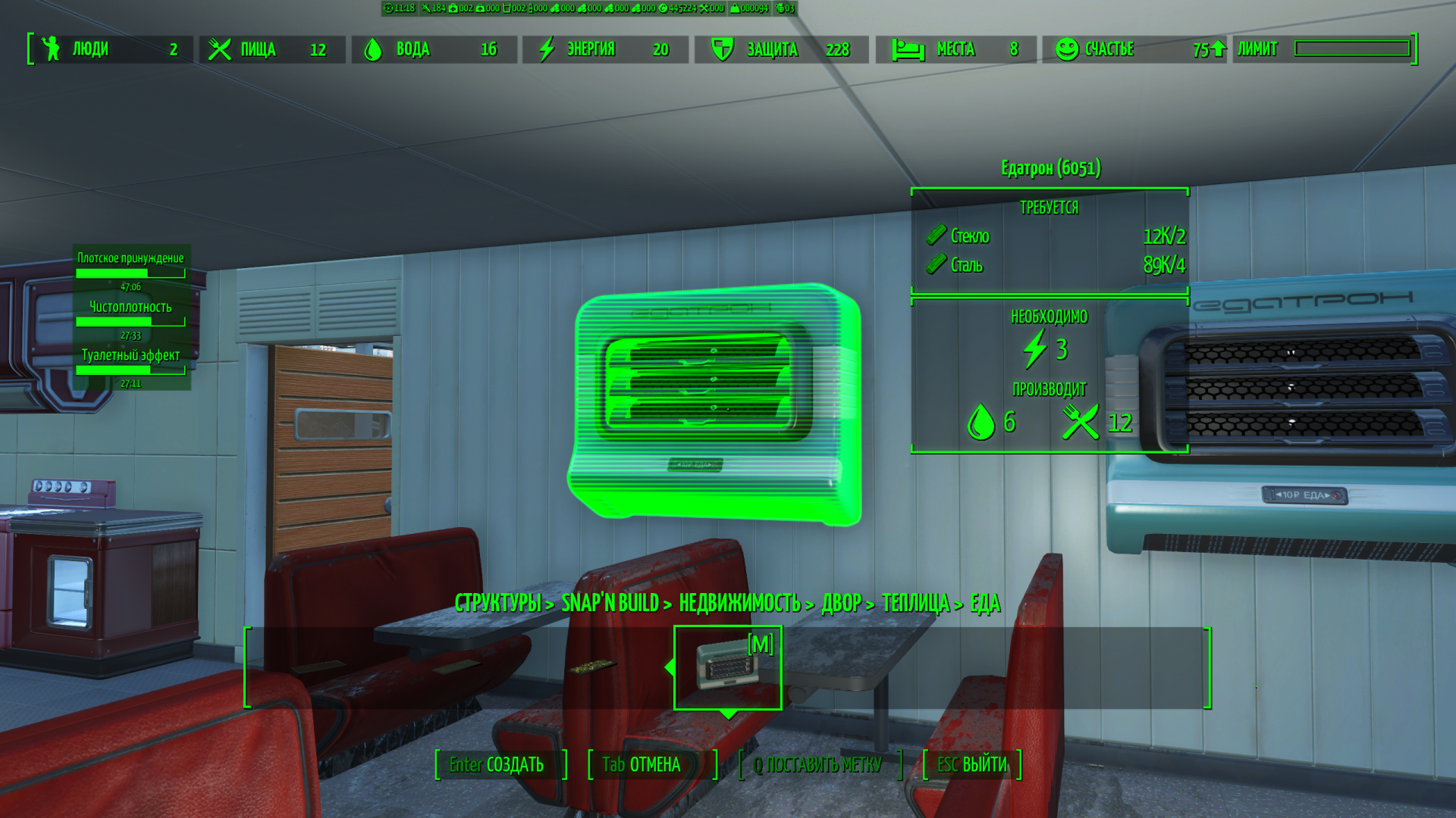 Сверху различные счетчики инвентаря (крышки, вес, адреналиновые инжекторы, ремонтные наборы и многое другое) и игровое время