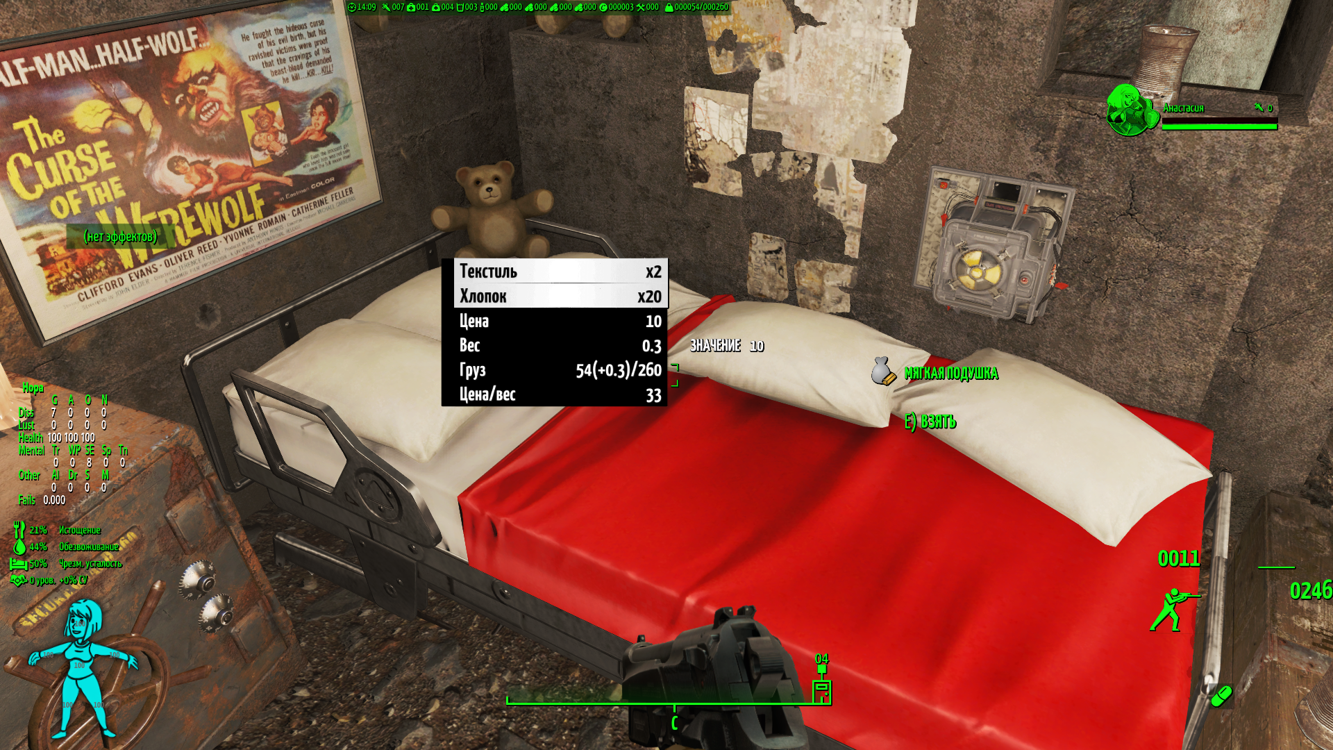 Сверху различные счетчики инвентаря (крышки, вес, адреналиновые инжекторы, ремонтные наборы и многое другое) и игровое время