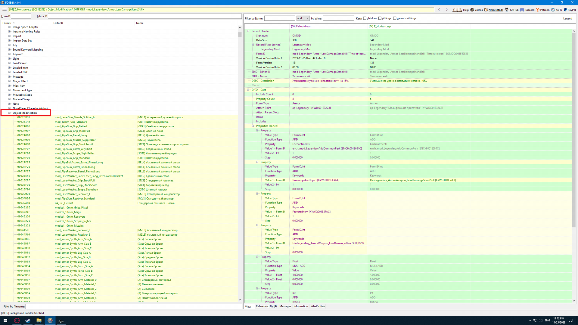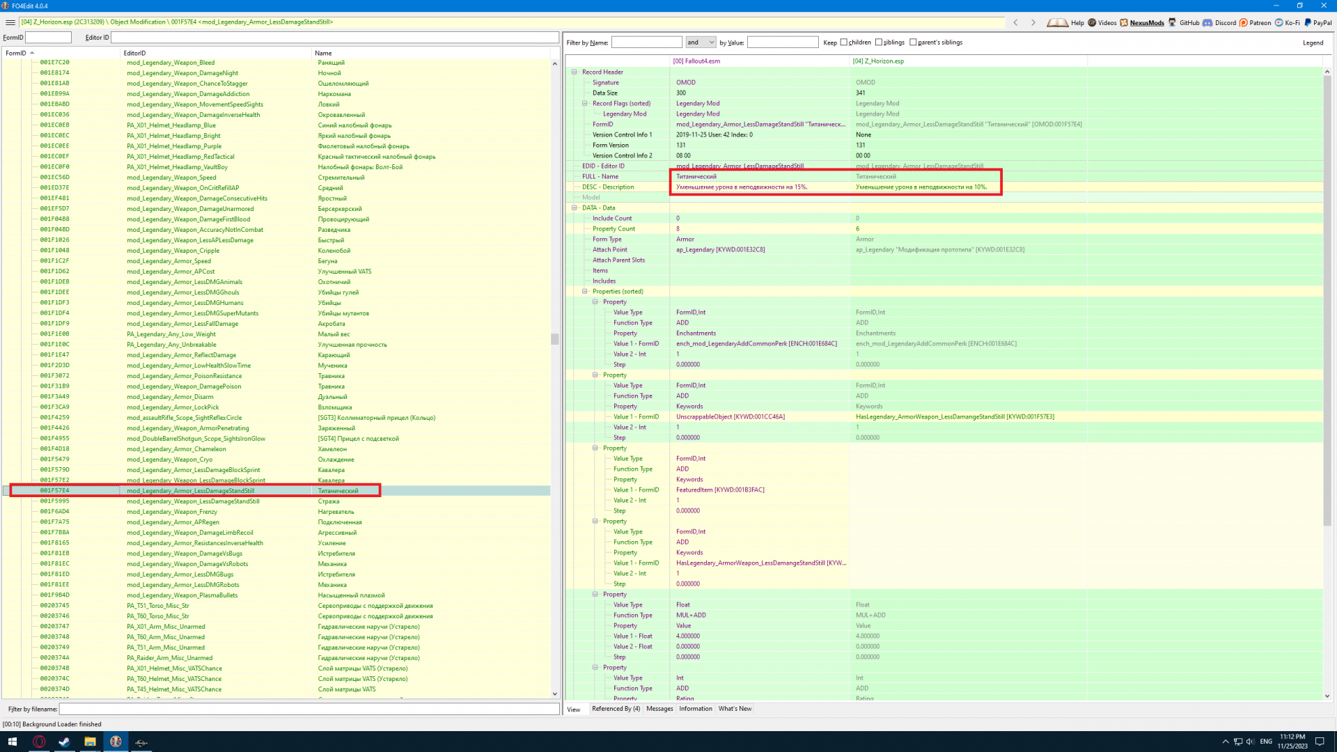 Нашел. Пришлось копаться и в Creation Kit чтобы сопоставить, но в итоге и в FO4Edit'е нашел. Всю систему как мне хотелось бы навряд ли это поменяет, но изменить какие то эффекты можно.