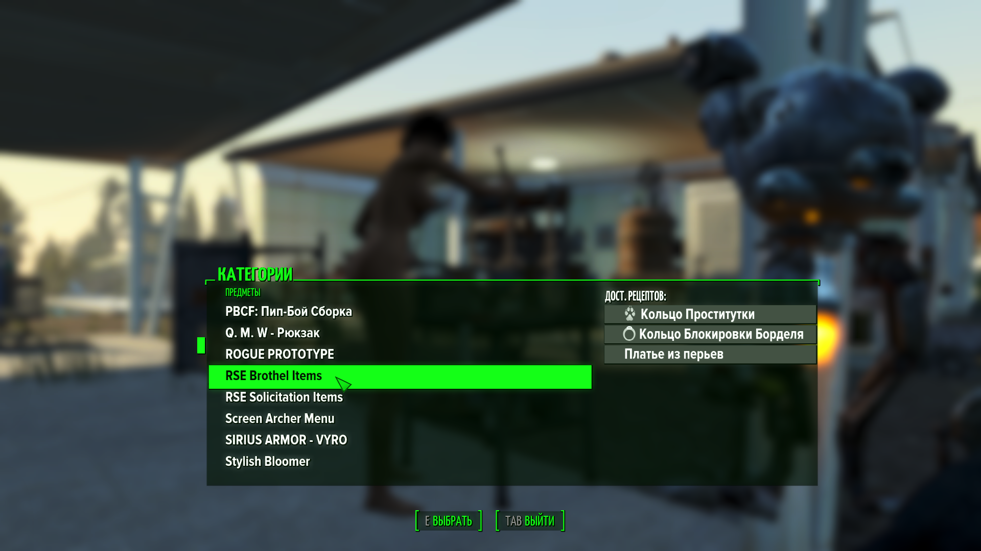 Универсальный верстак->Броня Создание->RSE Brothel Items