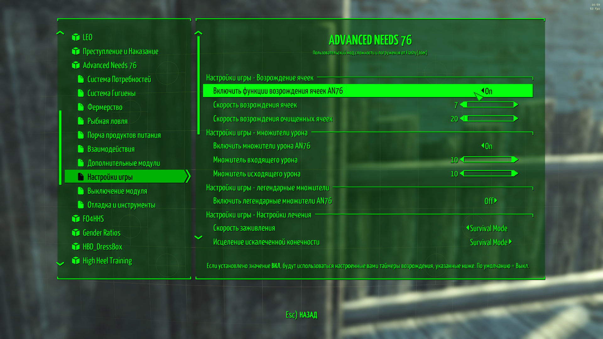 Ты уверен, что Advanced Needs 76 отвечает за респаун, а не Game Configuration Menu?