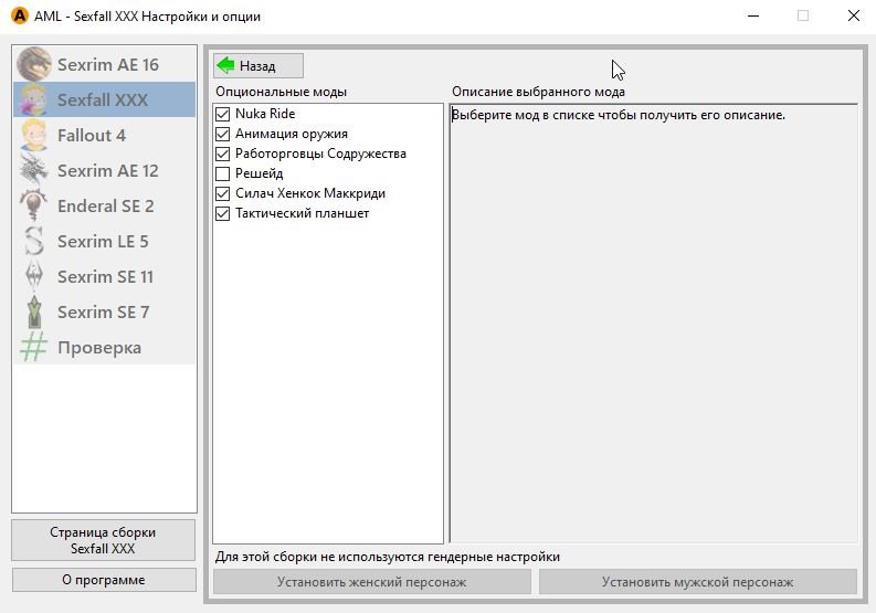 В этой сборке играть можно только персонажем женского пола.
