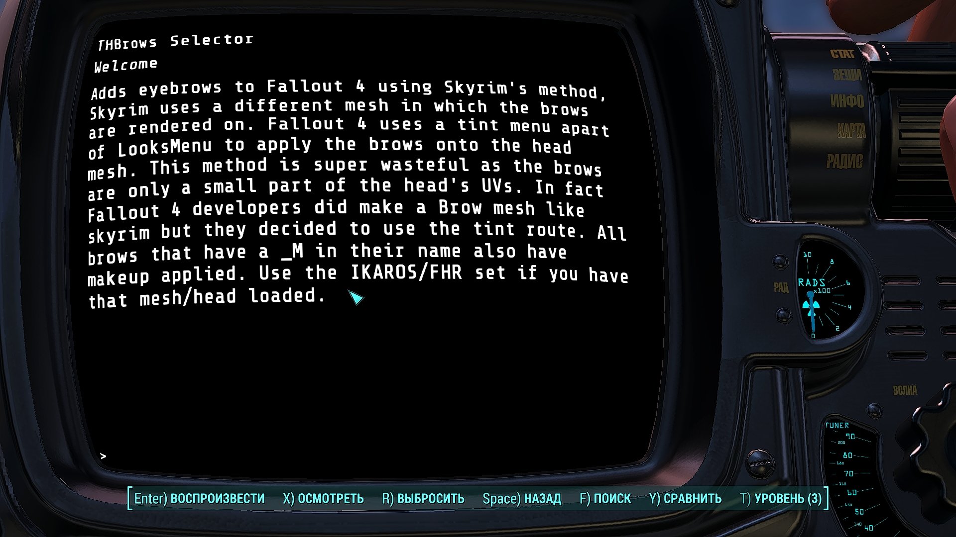 Привет всем! Подскажите, почему в редакторе создания персонажа отображаются только дефолтные брови, а, например, THBrows отсутствует?