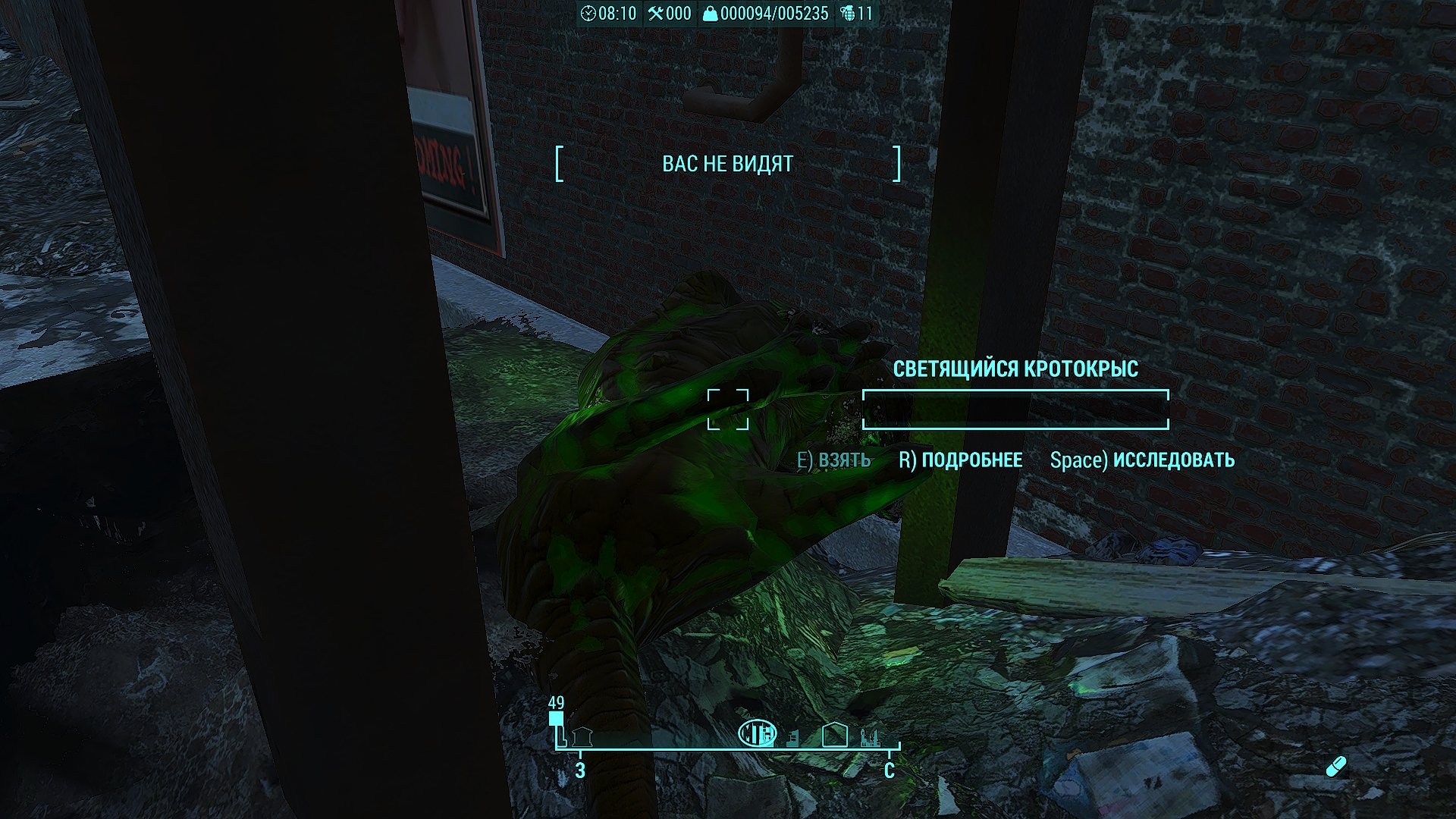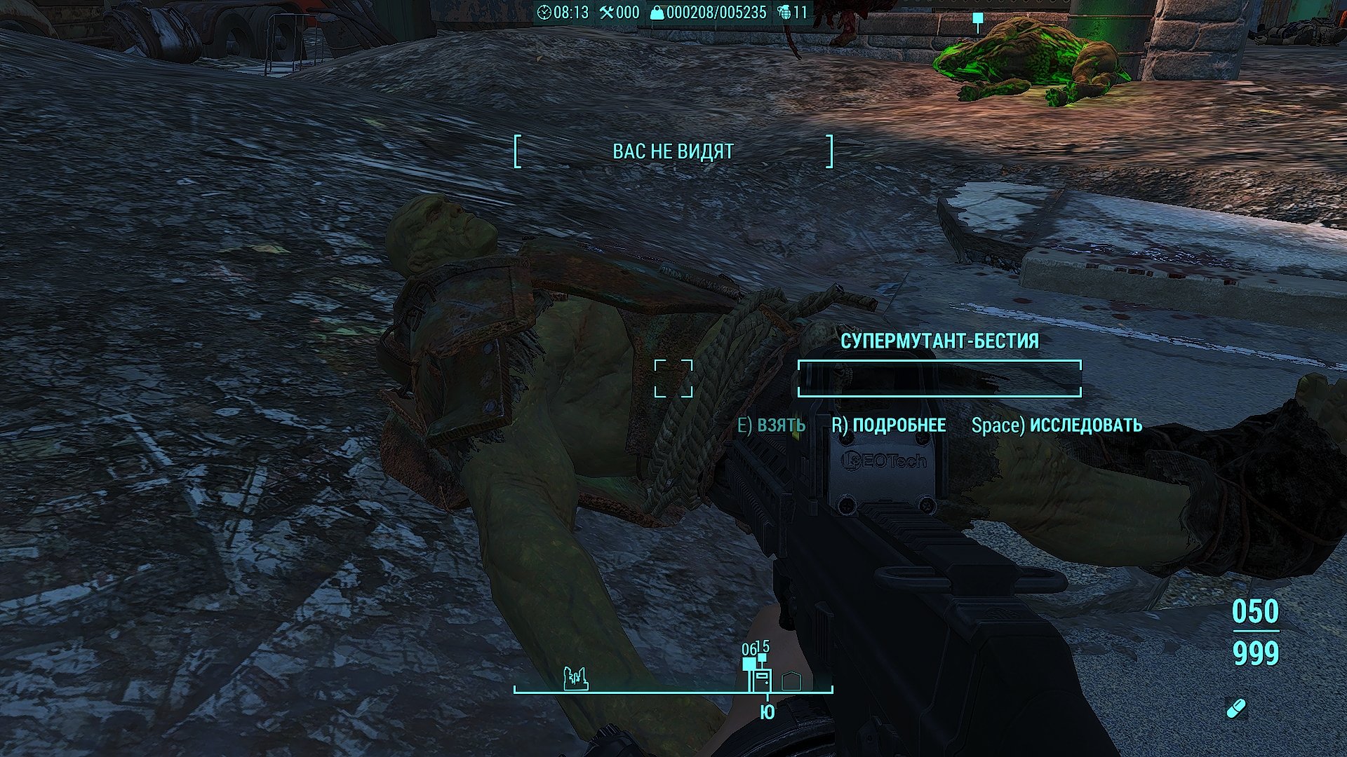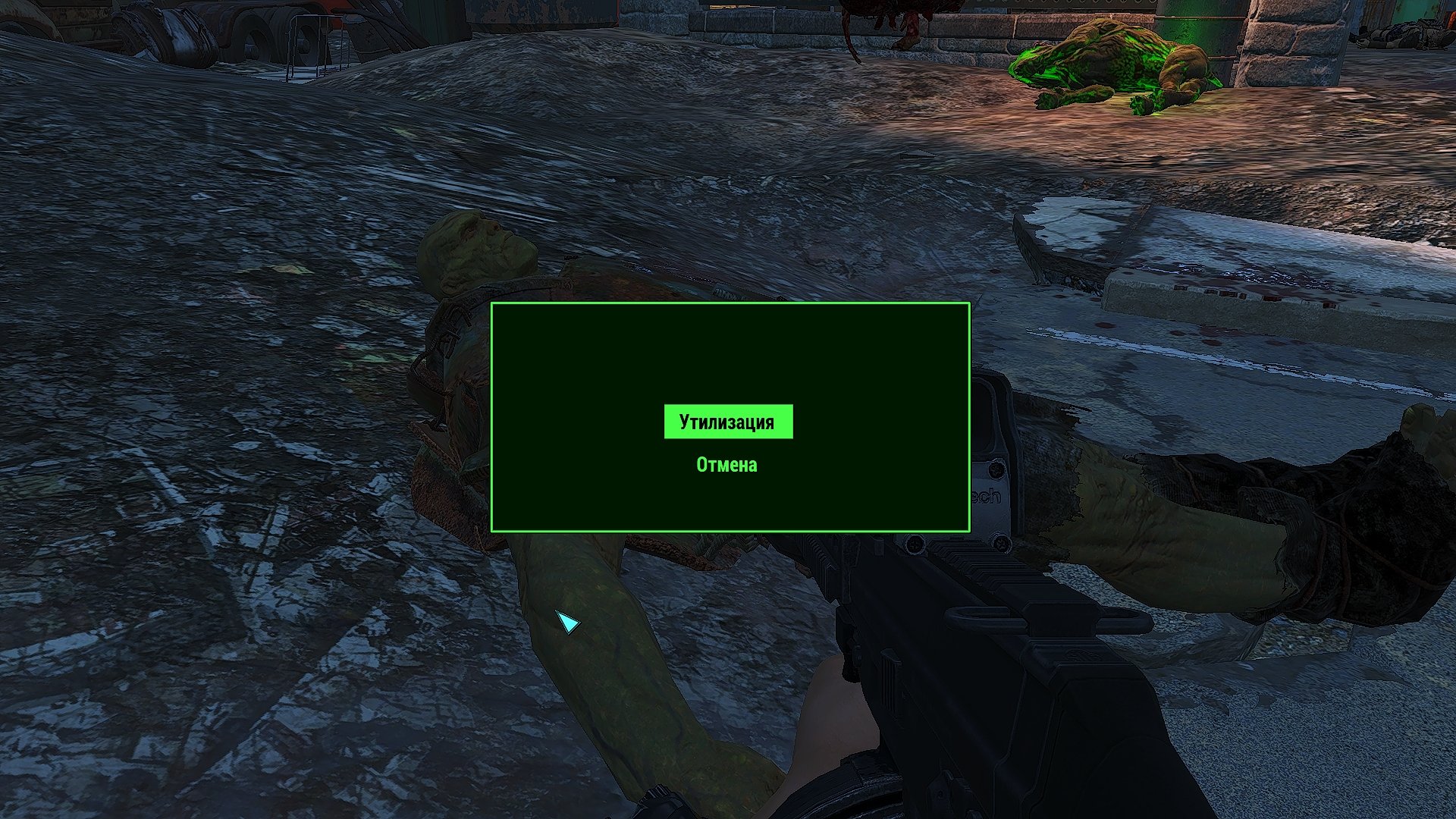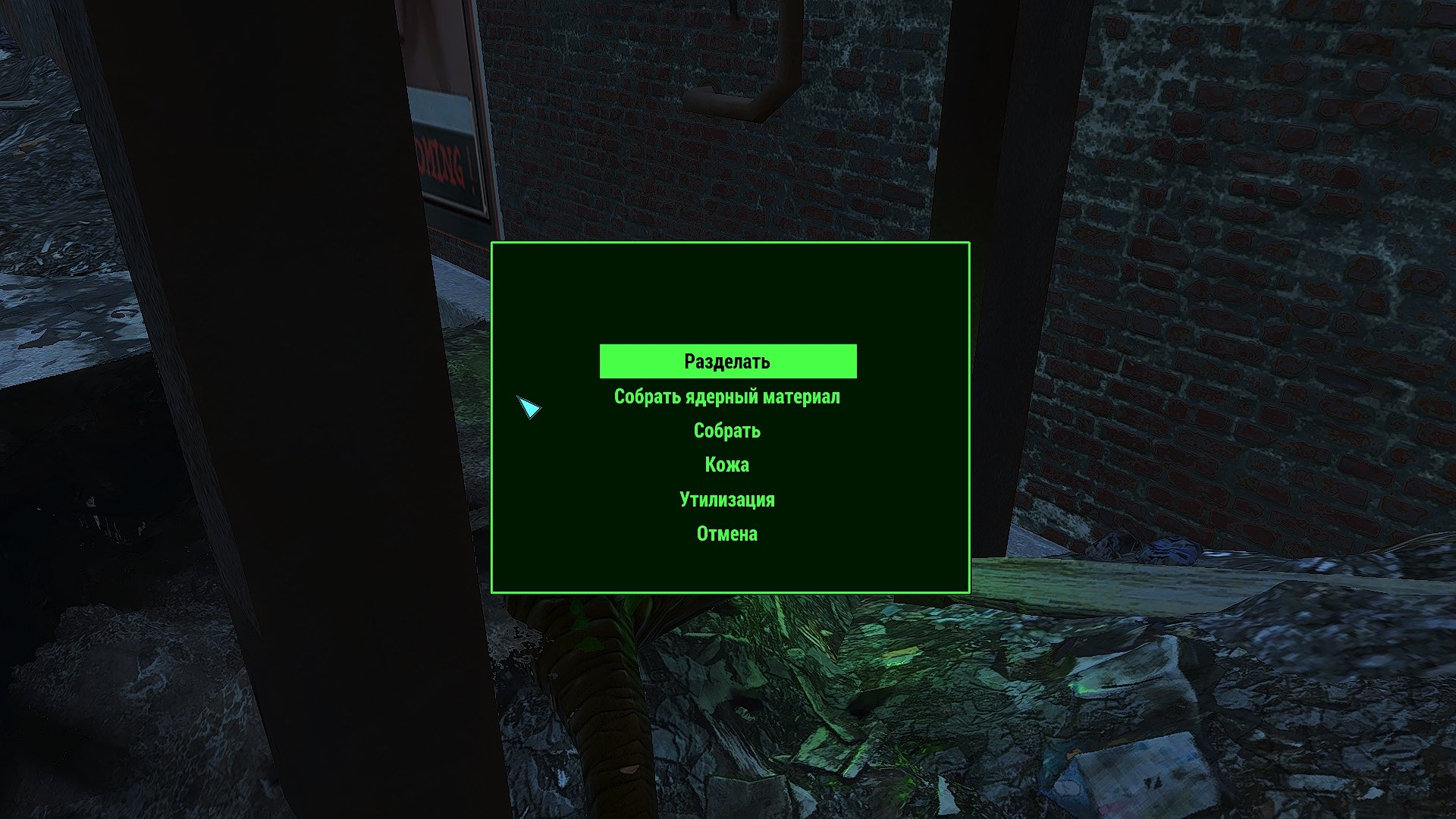 @vovanut , странно, что "Е применить". В скрипте - исследовать. По дефолту - кнопа Space. Разделываются все - люди, гули, супермутанты, роботы (без разницы, из DLC или нет). У меня настройки без каннибализма (фу таким быть 🤣) -