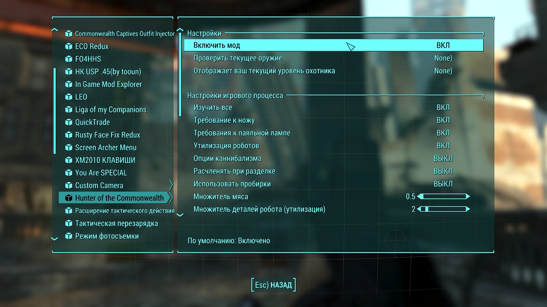 После изменения некоторых настроек в МСМ, опции: Hardcore Content, MCM Booster, Решейд могут стать отключёнными после включения. Не включайте их снова иначе настройки модов и МСМ сбросятся.