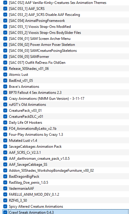 Поделитесь списком анимаций, пожалуйста. А то я вообще не представляю где их брать. Сегодня добавил даже бестолковые одностейжевые от BP70 на привал.