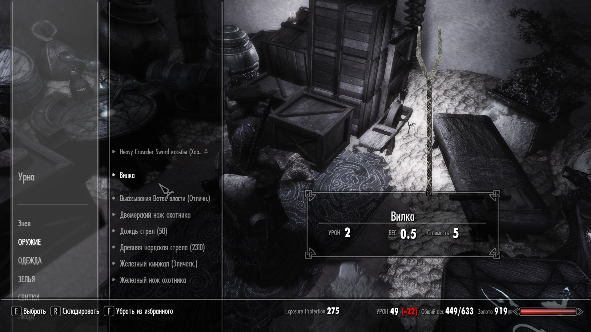 И ещё по ходу НПС благодаря находящейся в моде деградации лута функции использования лута НПС начинают использовать предметы которые для использования как бы не предназначены..) была вилка теперь нож.. при чём если нашёл их в трофеях НПС их вполне можно использовать как оружие вот только улучшить и зачаровать их невозможно..
