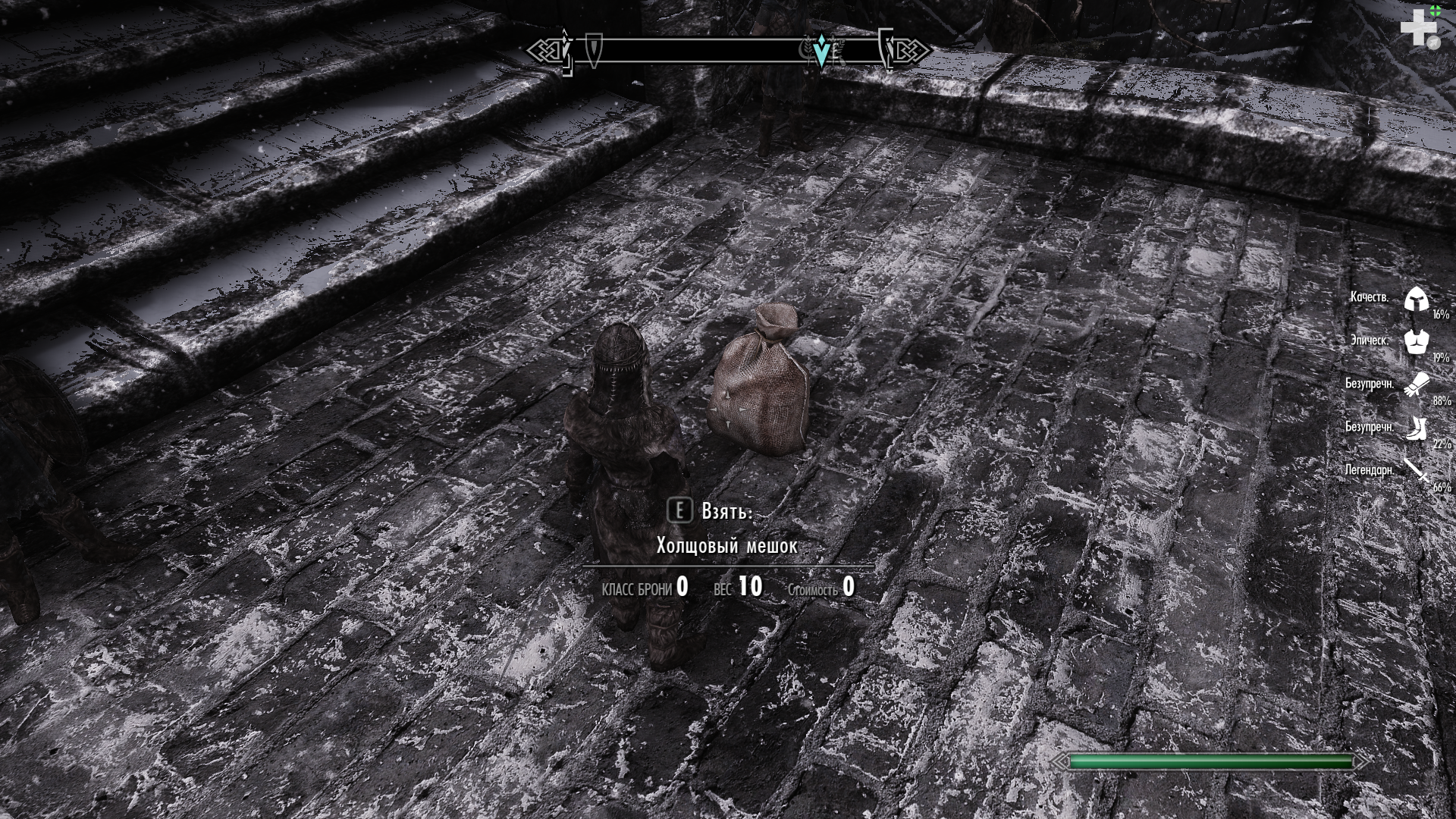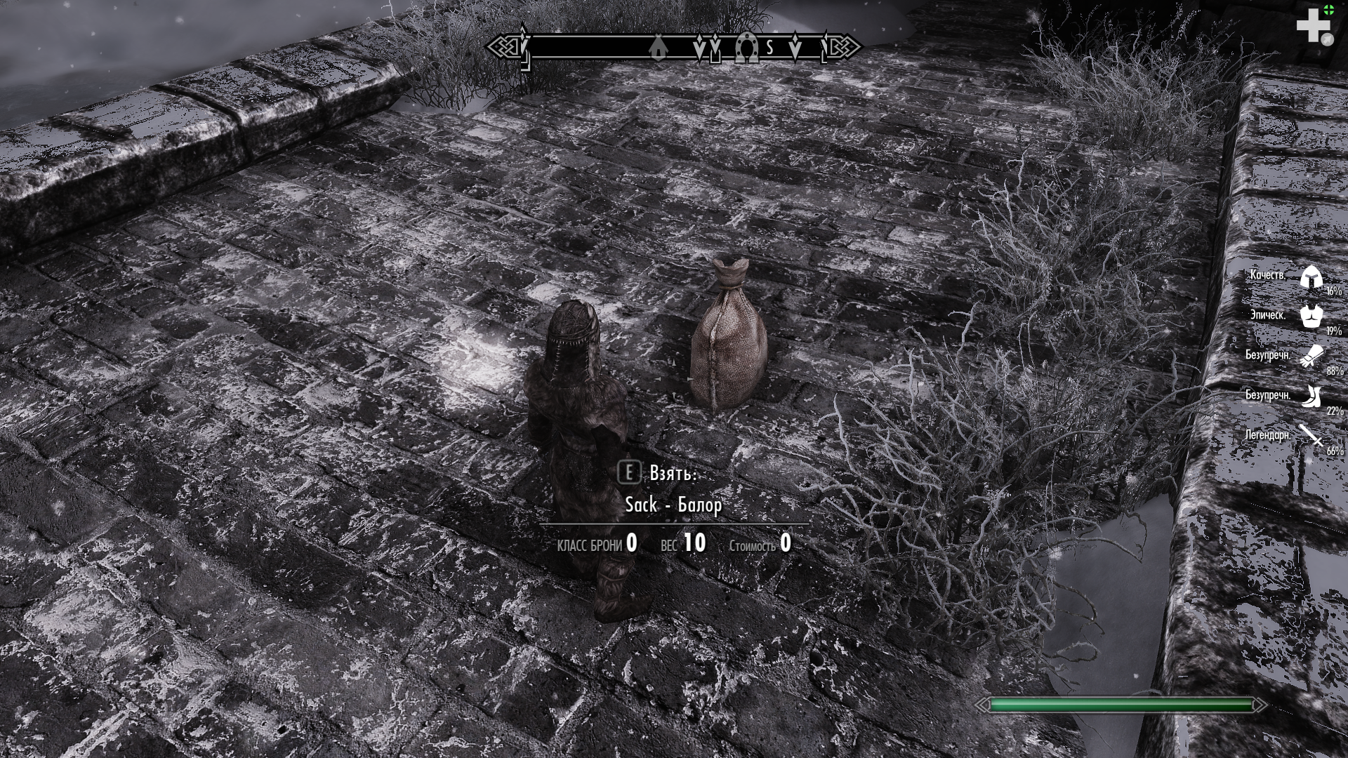 Для тех кто будет проходить квест дозорный стендара - не подбирайте трупы НПС данного квеста.Прибил в таверне Балора взял труп и получил глюк снять Sack-мешок невозможно клавиша "G" не срабатывает при многократном нажатии sack исчезает и появляется наименование холщовый мешок и тогда его можно скинуть изредка скинутый мешок возвращает себе наименование Sack-Балор и практически всегда спустя пару минут следует вылет с помощью быстрого сахранения убрался от этого мешка подальше,но вылеты пока увы сохраняются.Надеюсь не придётся переходить на старое сохранение и переигрывать.