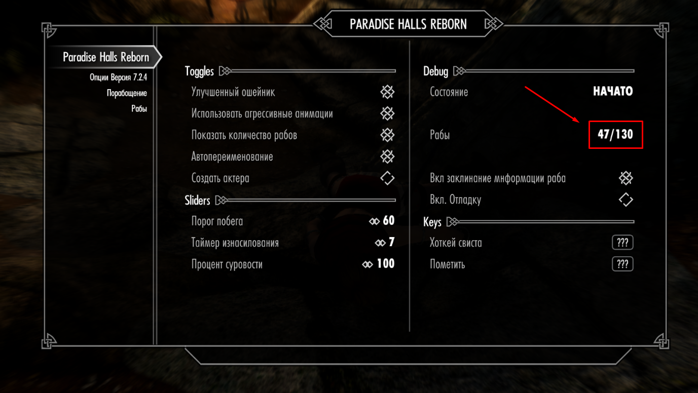 Жирнейший вопрос по моду Paradise halls. В ЛЕ было доступно порабощение вроде до 60 рабов. В СЕ написано, что лимит 130 рабов. Но я поработив 45 рабов уже просто на пределе, мод страшно тупит, сейчас поясню: