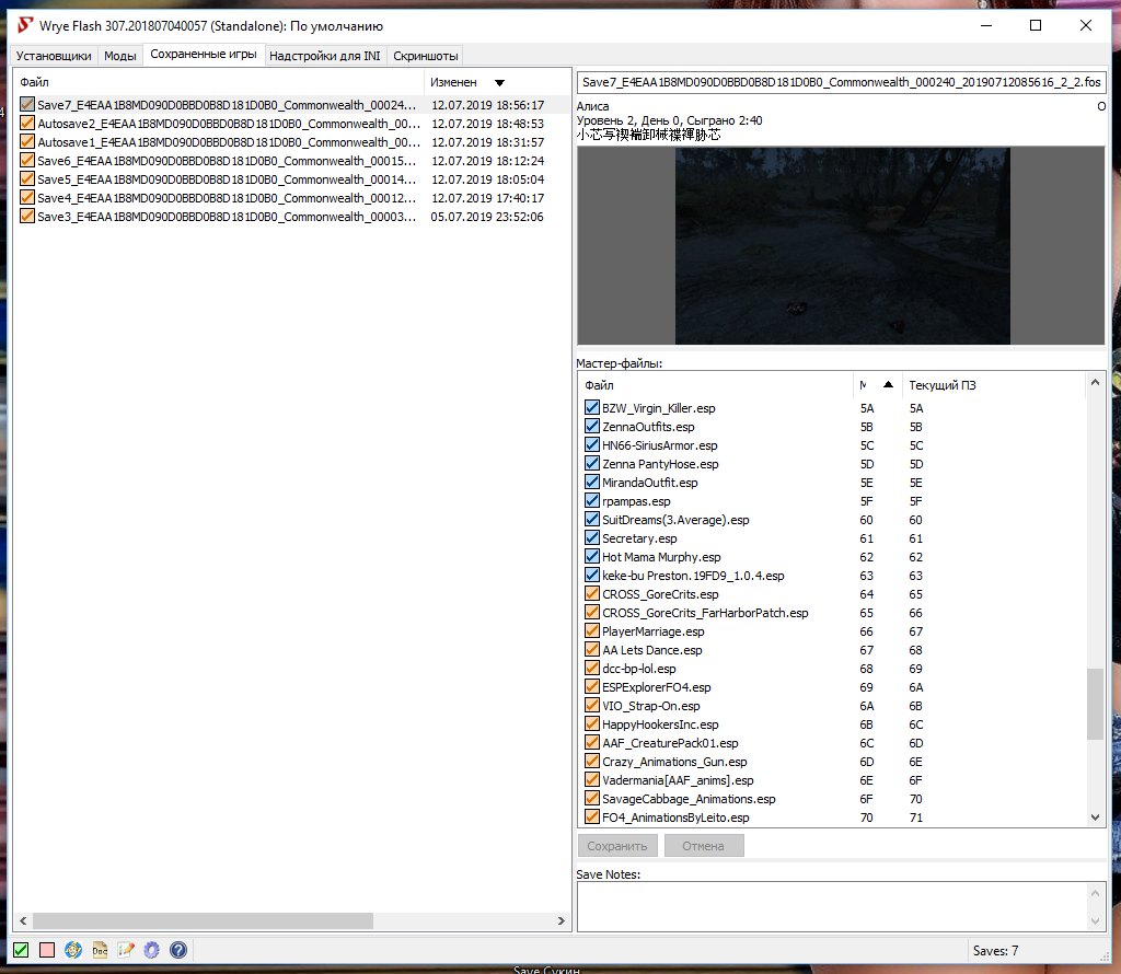 ВАЖНО! Если вы начнете полностью новую игру (не с моего сохранения), то все секс моды должны быть отключены до выхода из убежища! Подключать секс моды можно только после выхода из убежища и сохранения игры! (из описания установки)