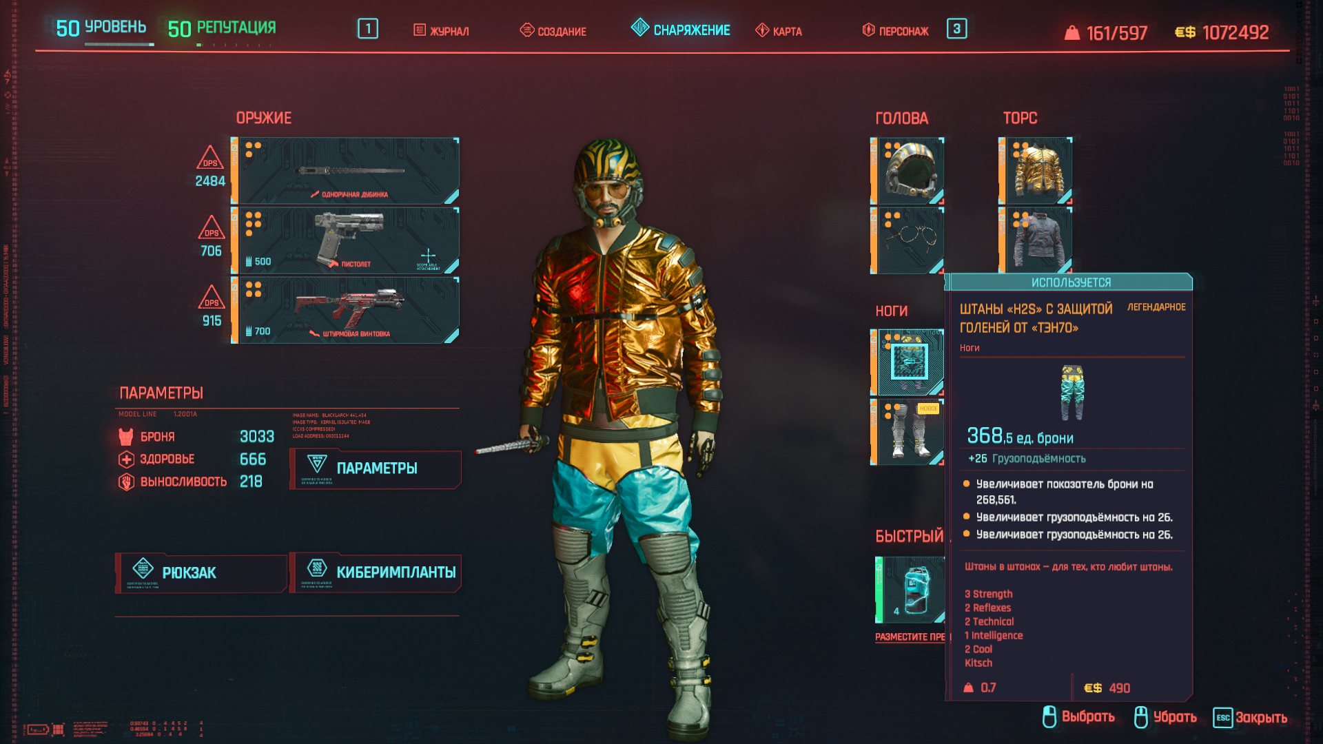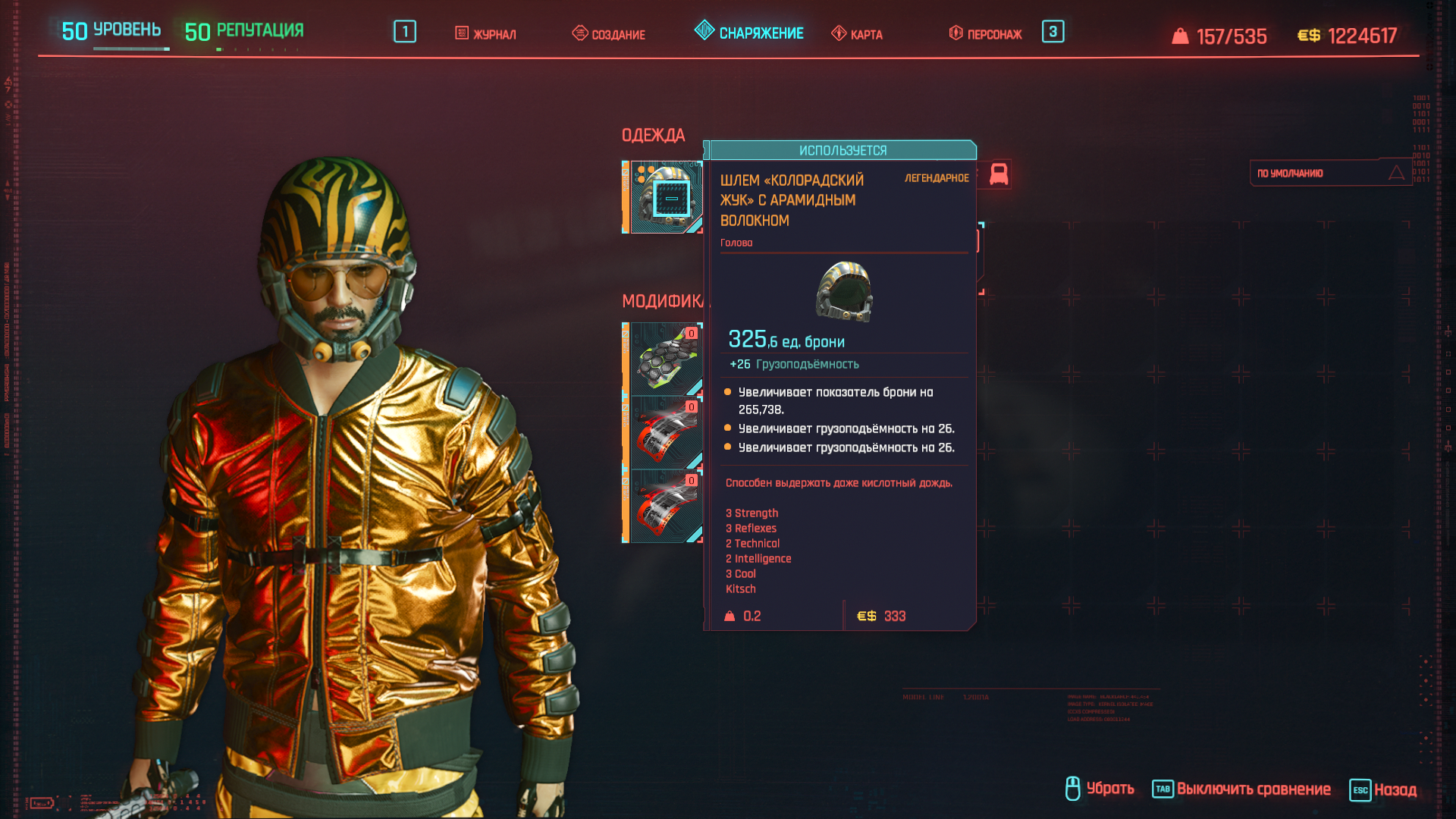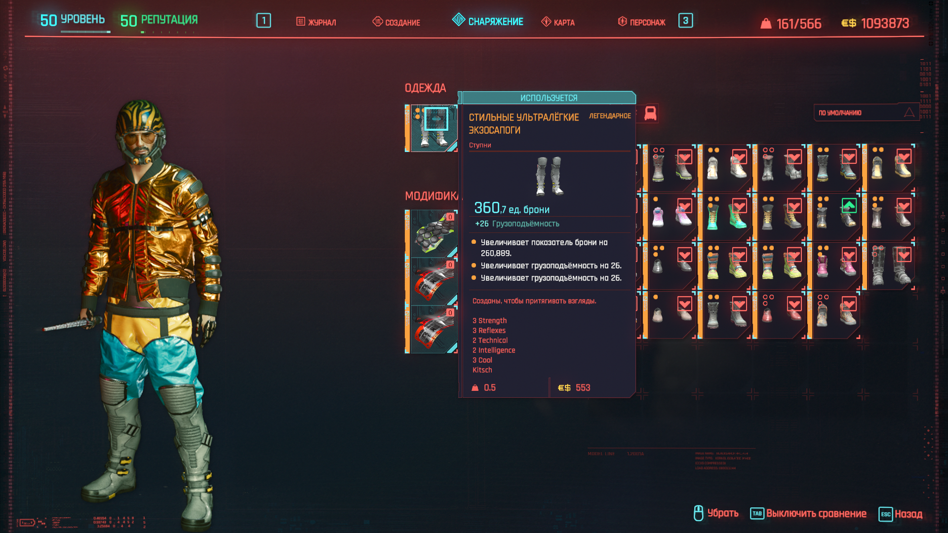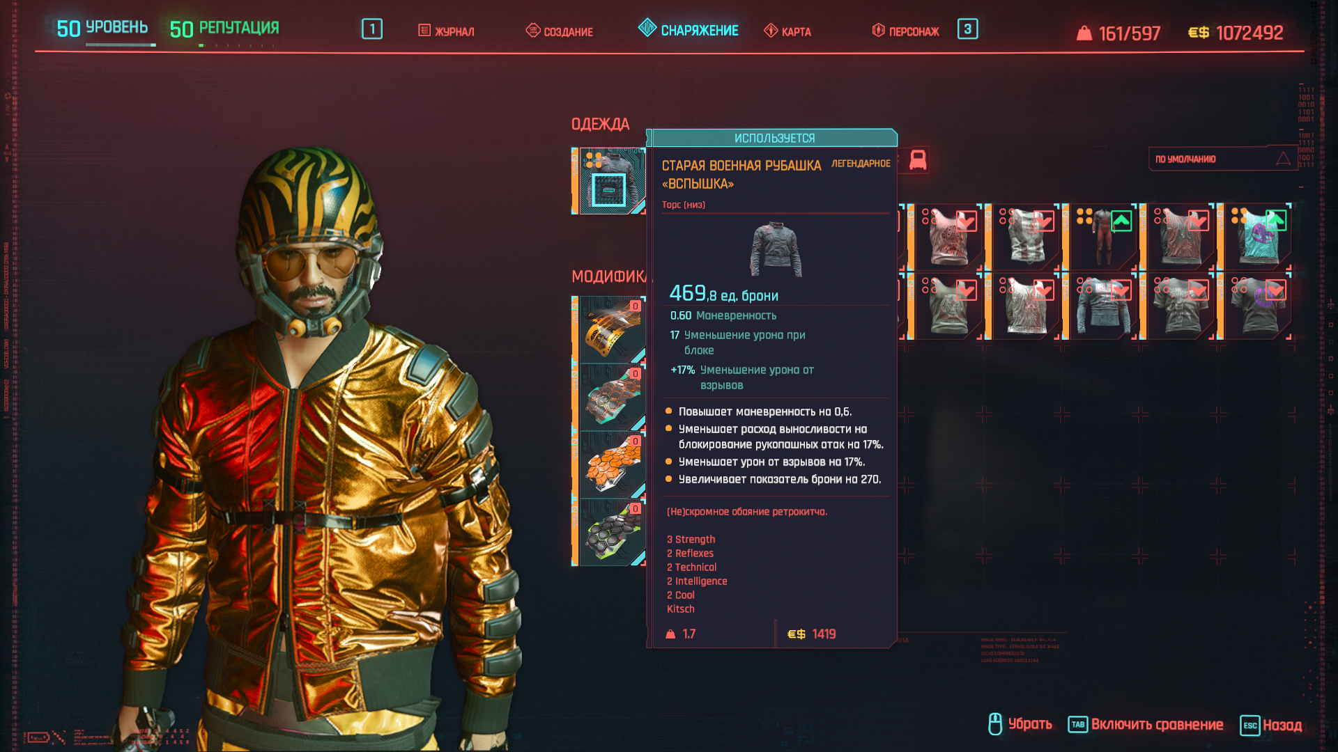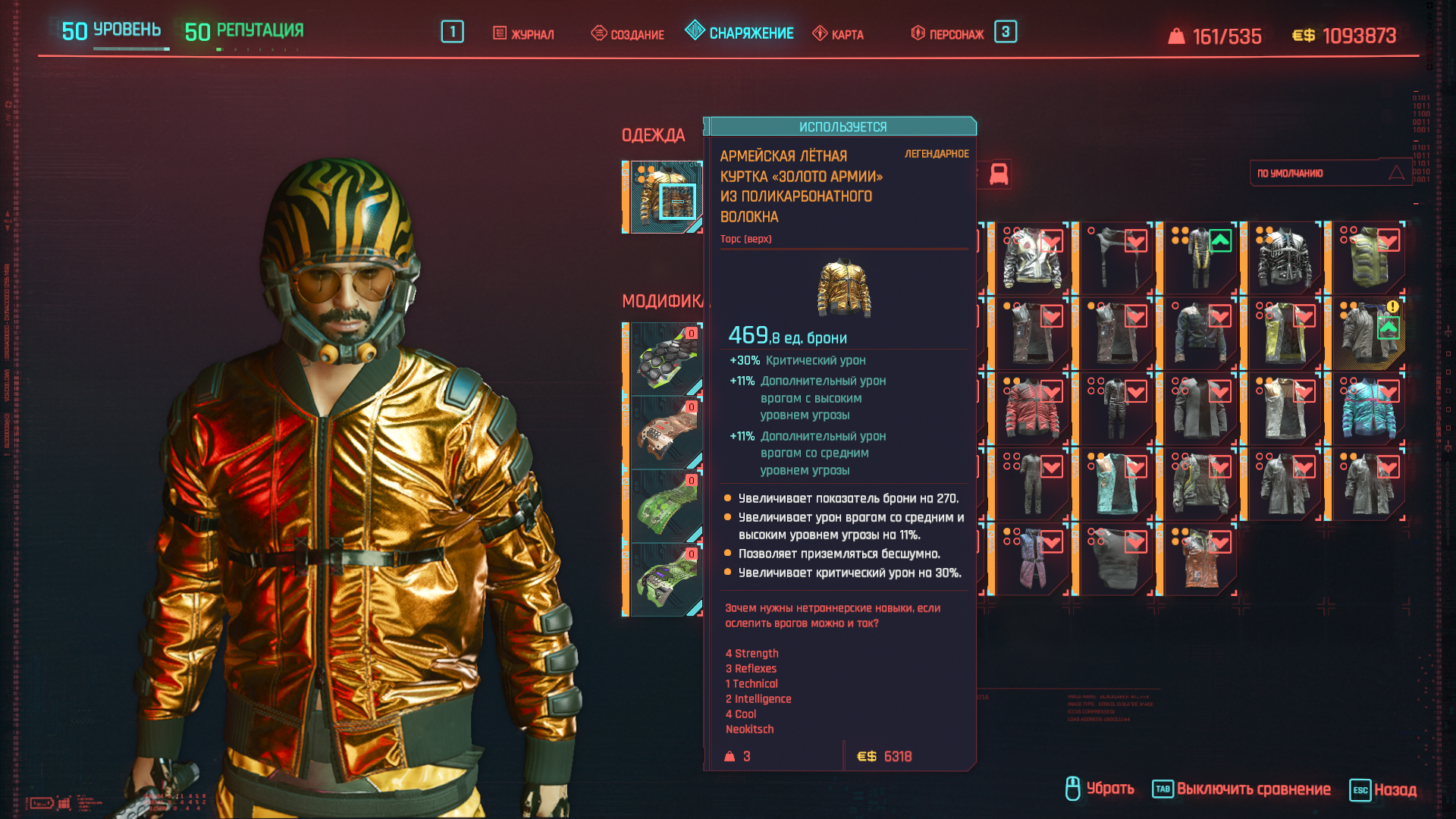 А вся одежда имеет дополнительные очки к характеристикам (красным шрифтом, но на английском языке).